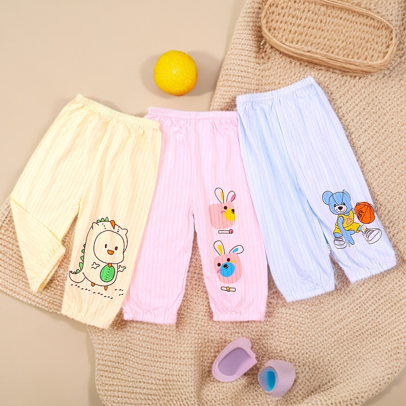 아기 모기 방지 바지 봄과 여름 얇은 클래스 대나무 섬유 아기 에어컨 파자마 바지 통기성 귀여운 어린이 여름 바지