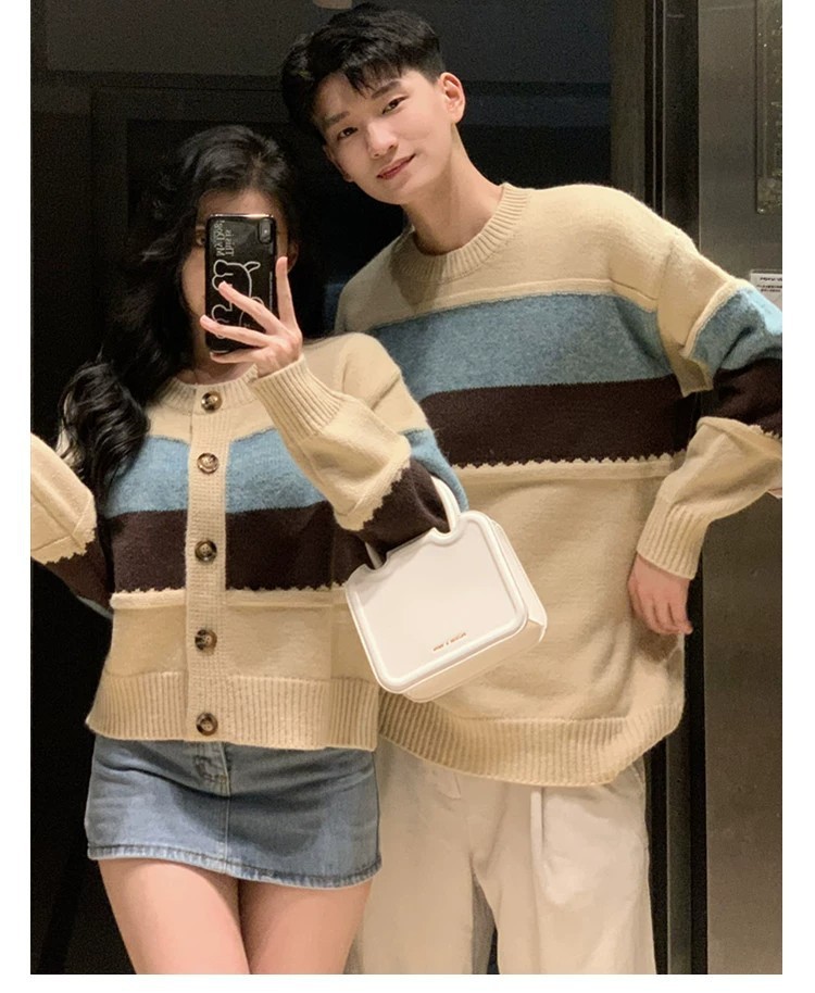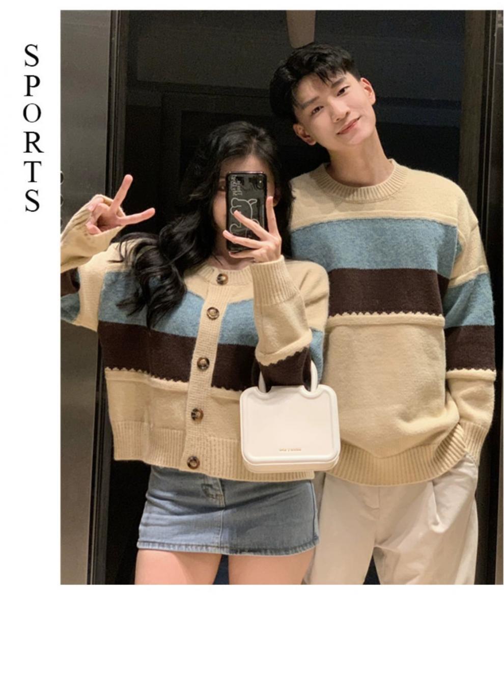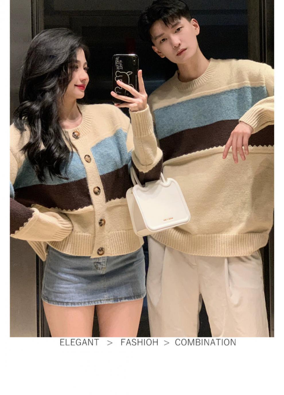 커플의 가을과 겨울 게으른 스타일 Ins 슈퍼 핫 스웨터 프렌치 루즈 스트라이프 디자인 트렌디 니트 카디건