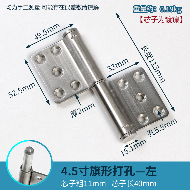 • 스테인레스 스틸 4.5inch 힌지 [구멍 없음 왼쪽]