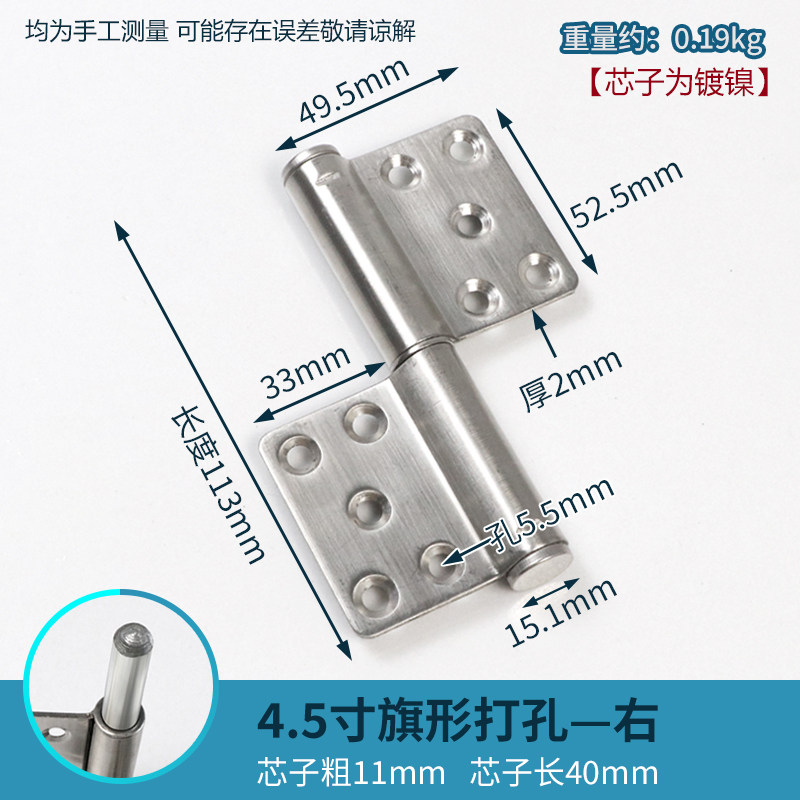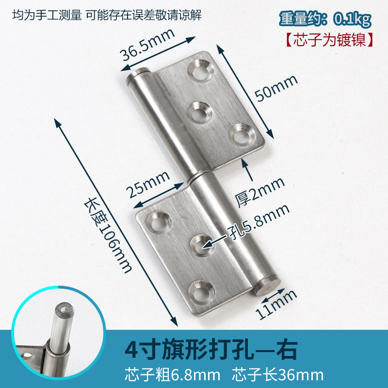 • 스테인레스 스틸 4.5inch 힌지 [구멍 없음 오른쪽]