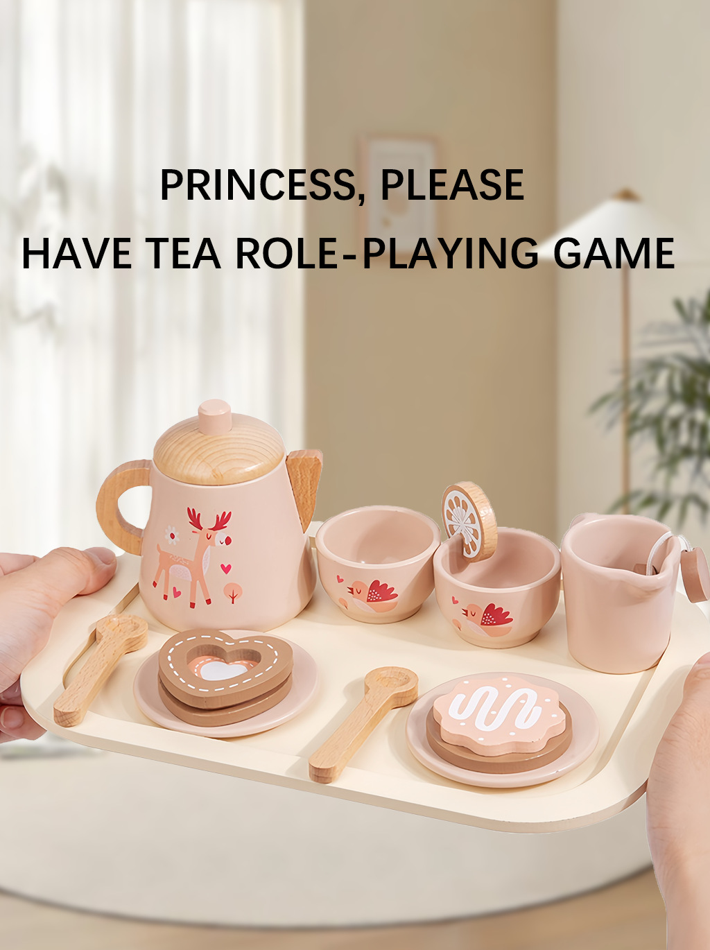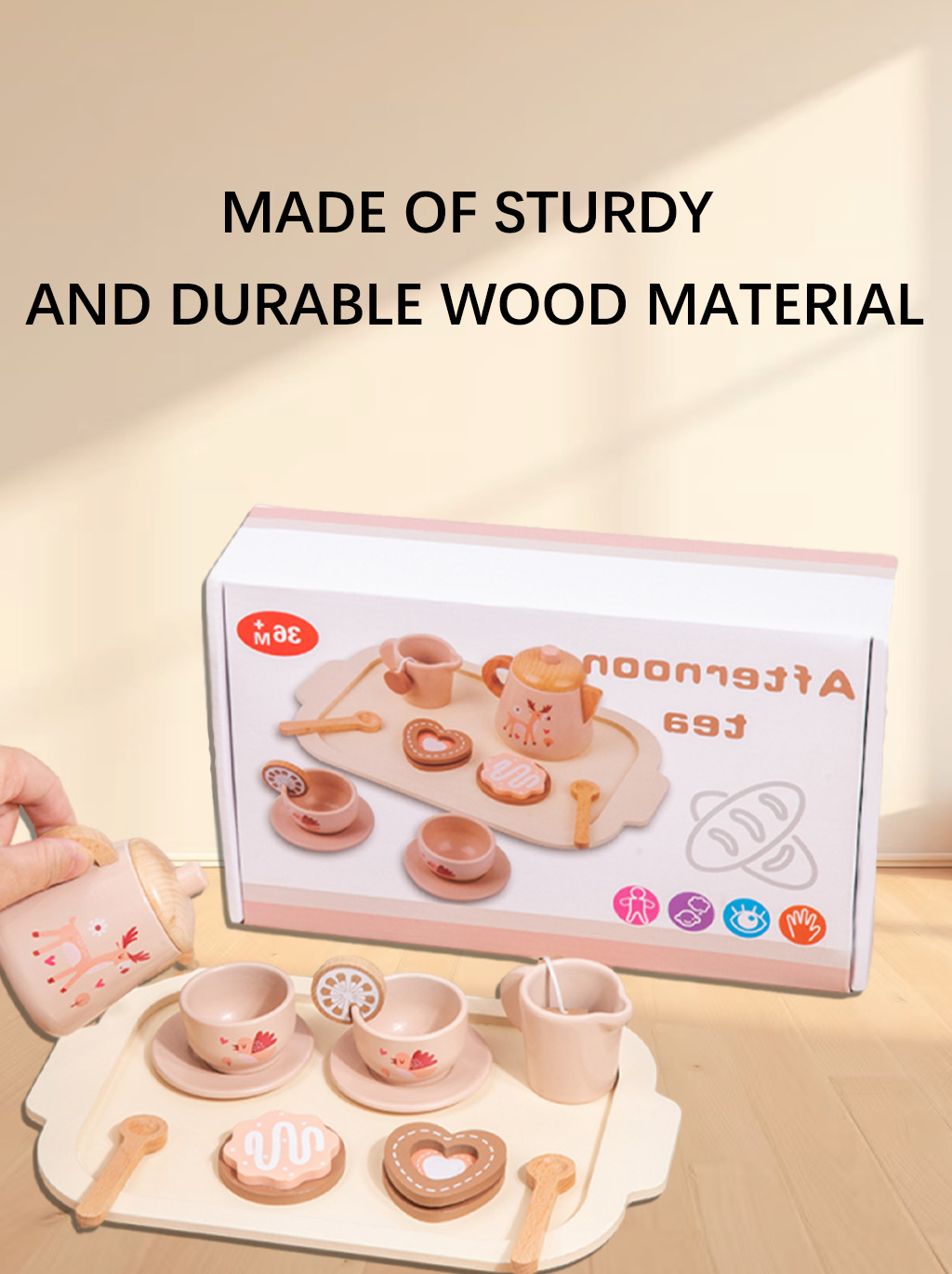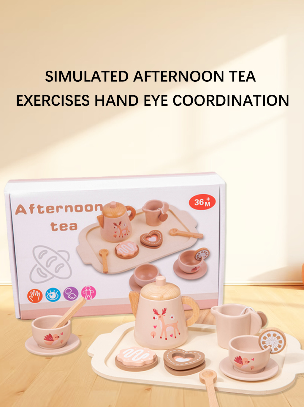 어린이 시뮬레이션 애프터눈 티 세트 대화 형 게임 차 세트인지 역할 나무 교육 장난감 재생