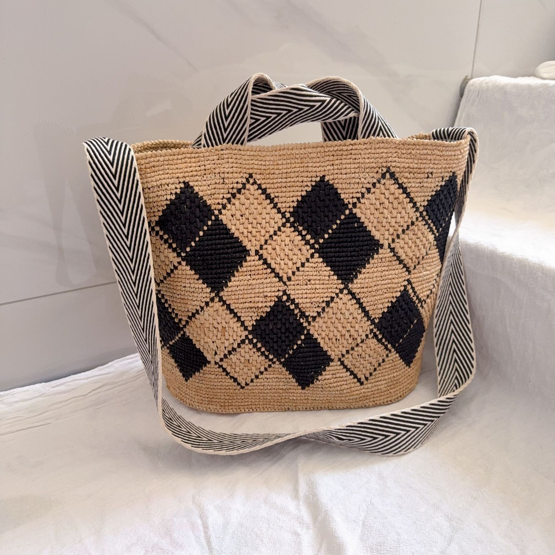 라피 잔디 고급 짠 가방 여성 여름 대용량 크로스 바디 백 해변 휴가 용 버킷 가방 토트 백 핸드백