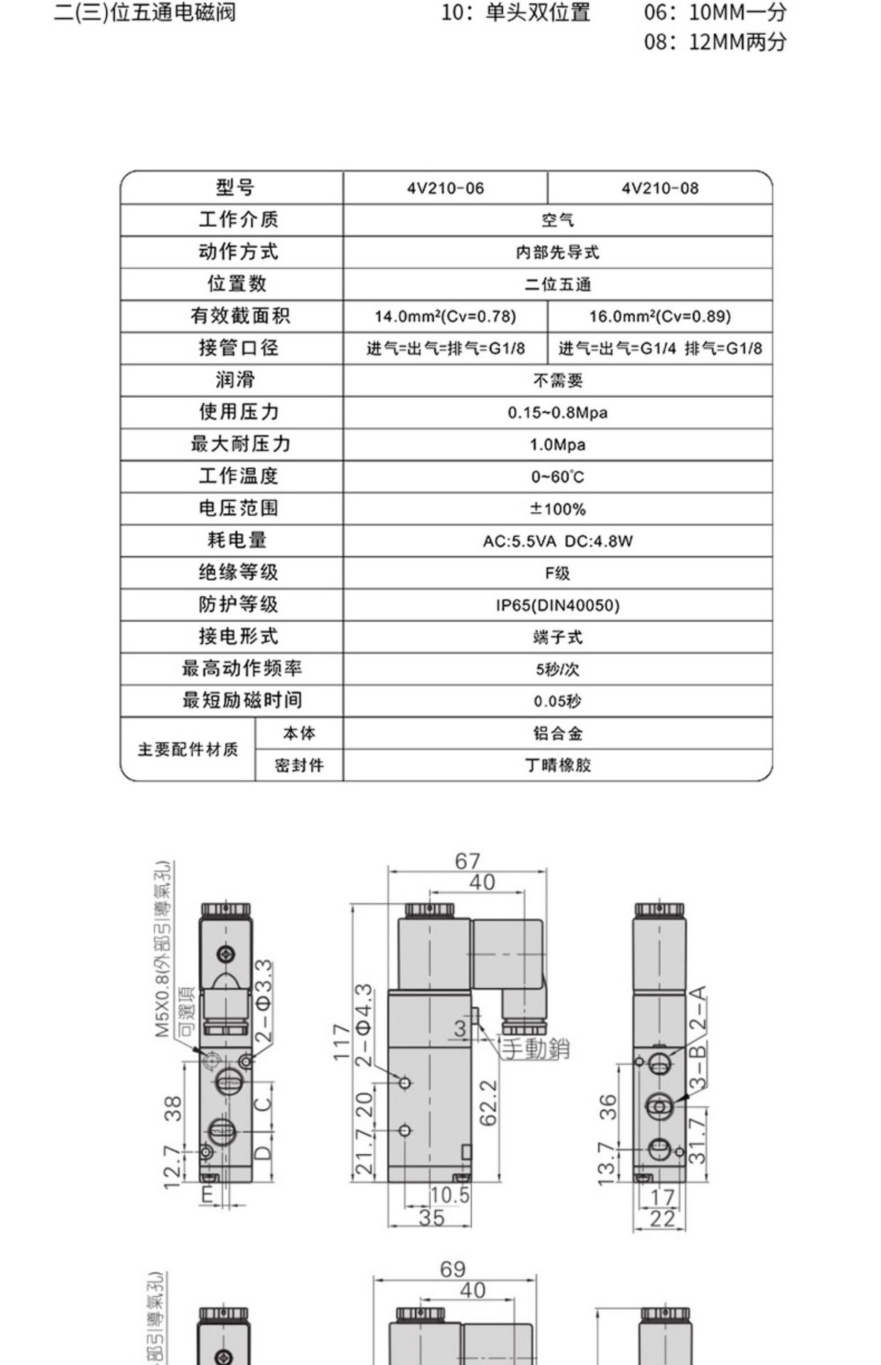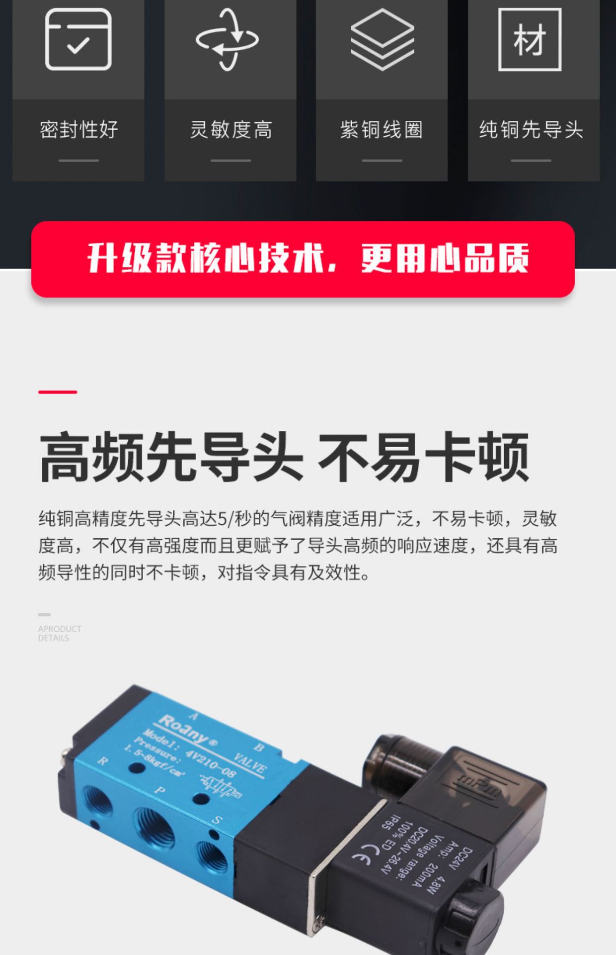 4V210-08 공압 솔레노이드 밸브 4V310-10 밸브 2 위치 5 방향 반전 밸브 4V410-15 전자기 제어