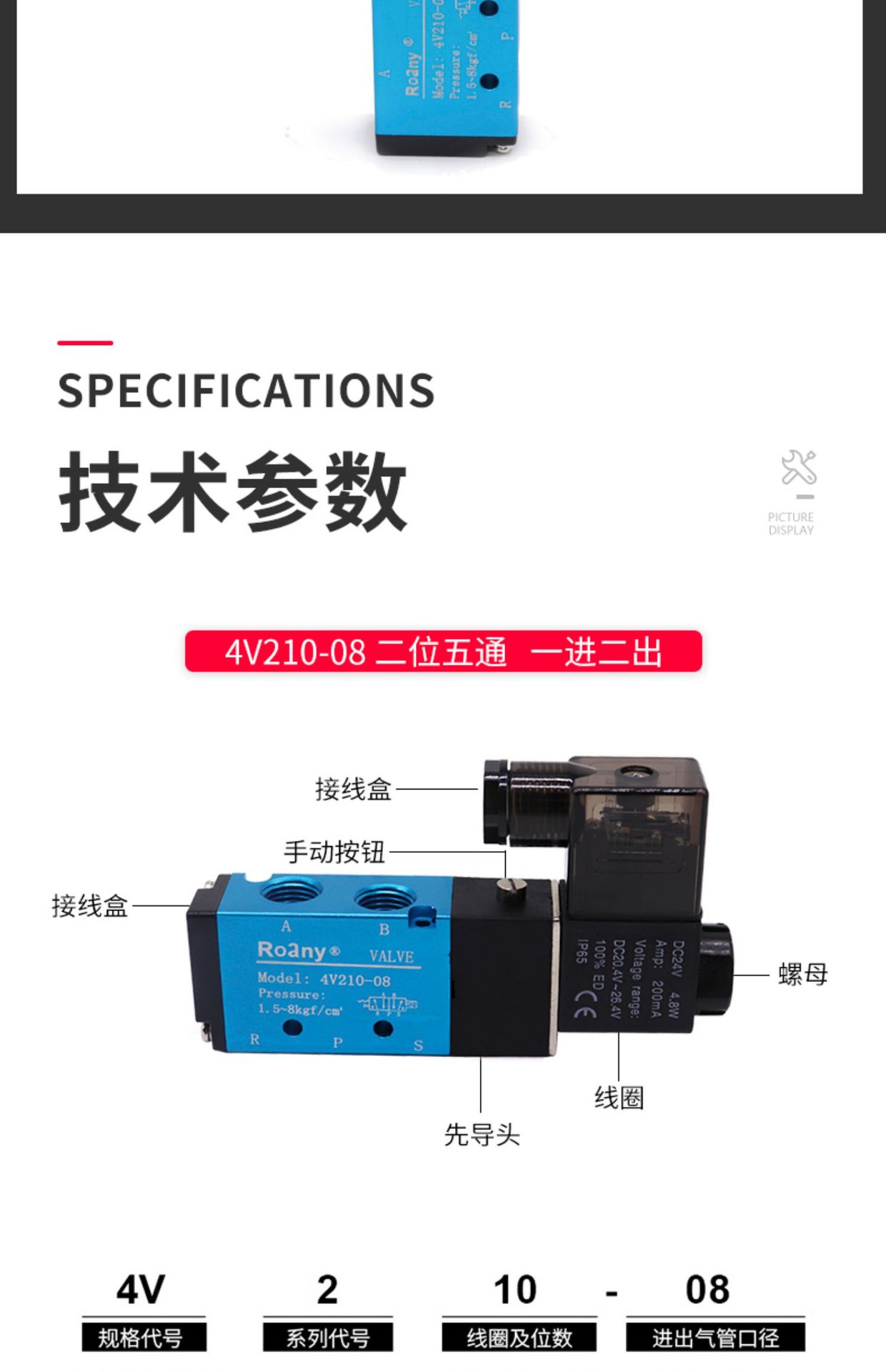 4V210-08 공압 솔레노이드 밸브 4V310-10 밸브 2 위치 5 방향 반전 밸브 4V410-15 전자기 제어스토어 가기