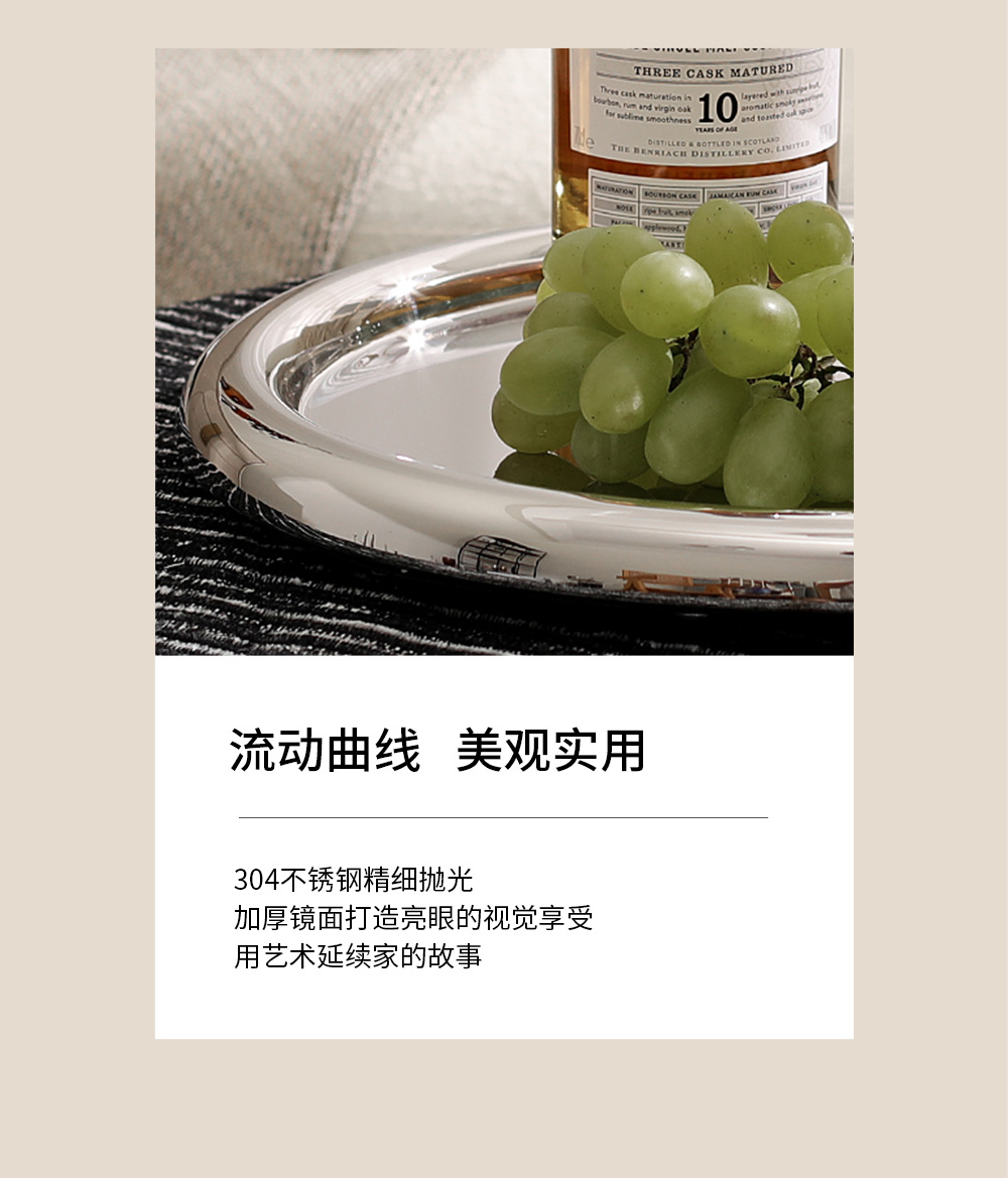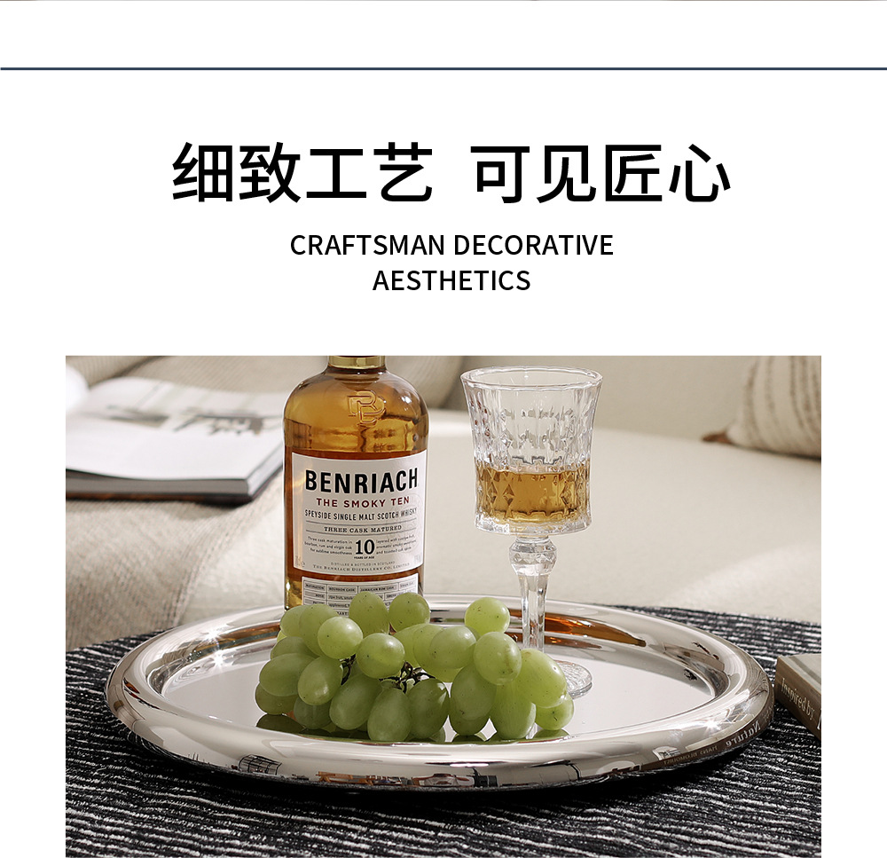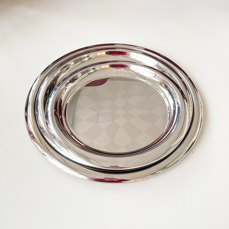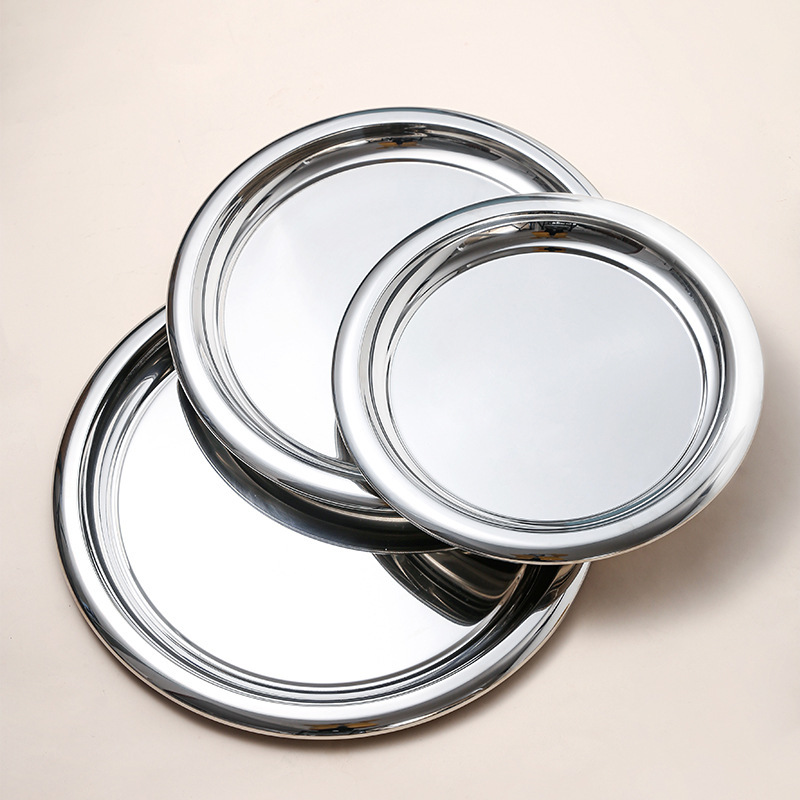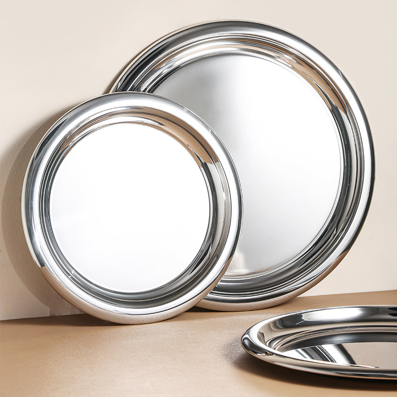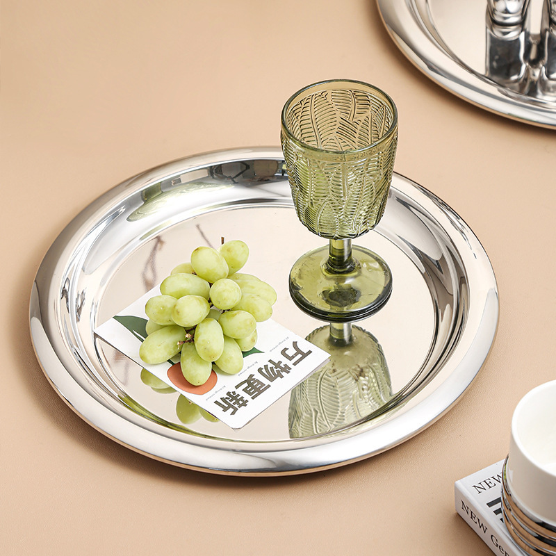 창조적 인 높은 가치 플레이트 스테인레스 스틸 라운드 트레이 바 식사 트레이 레스토랑 과일 플레이트 가정용 크리에이티브 스토리지 플레이트