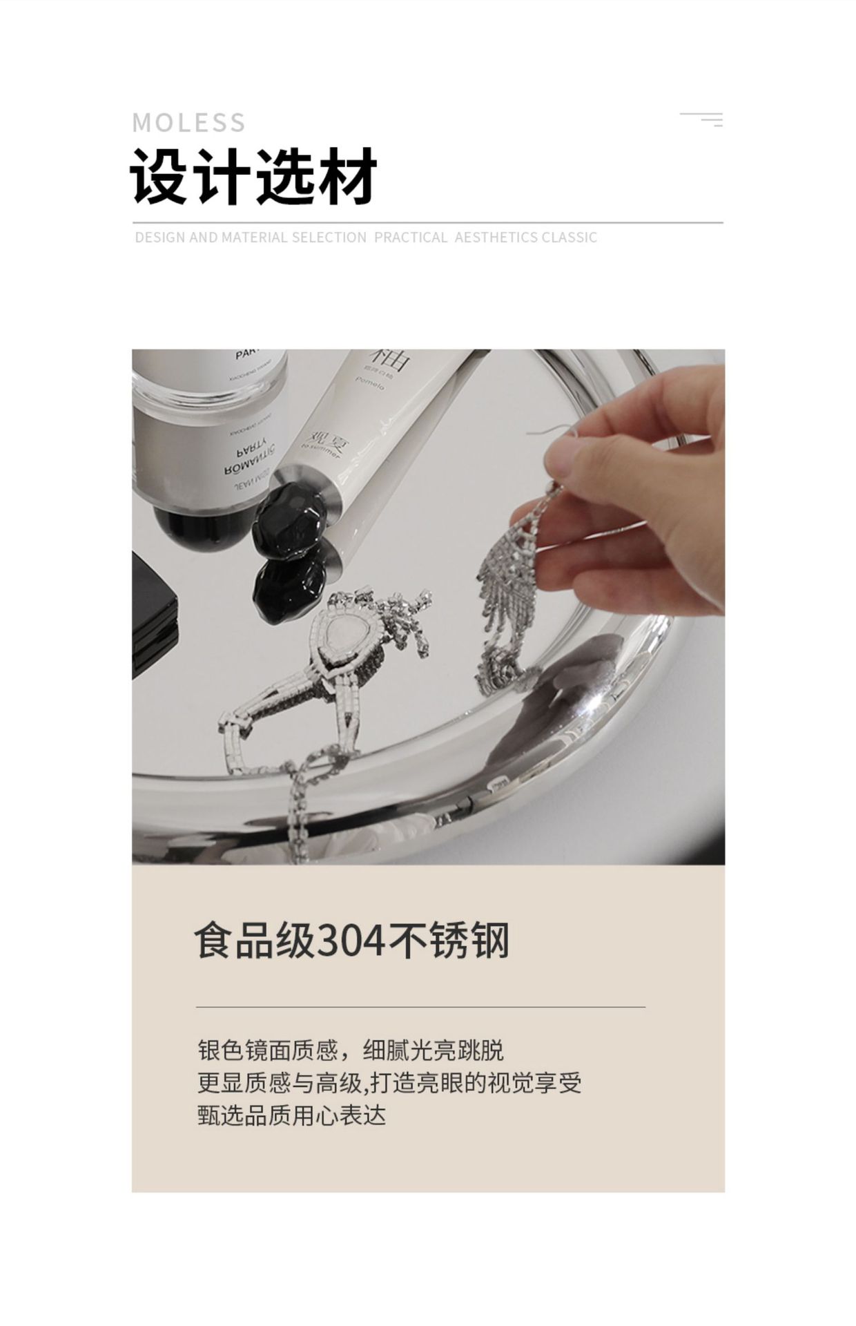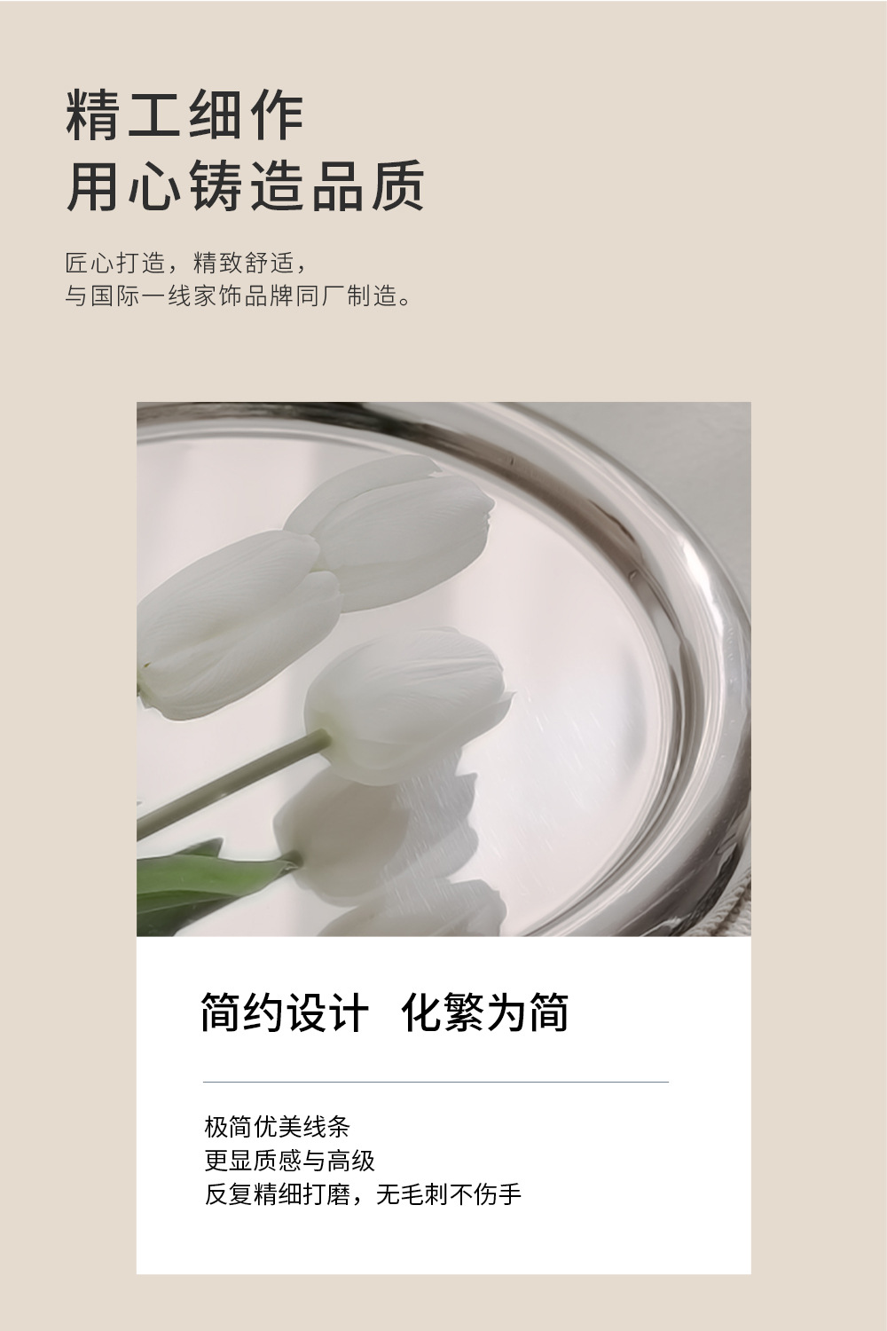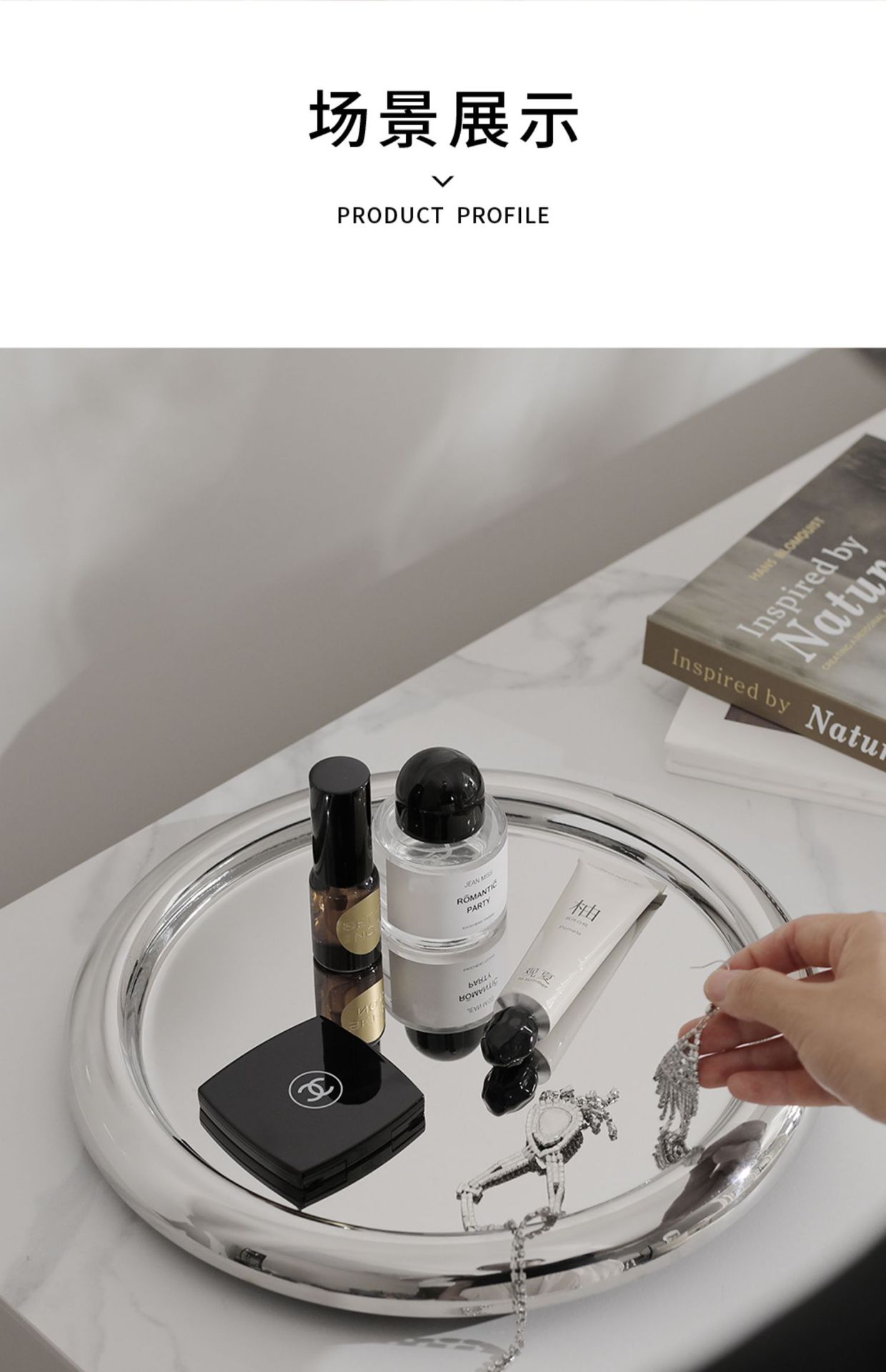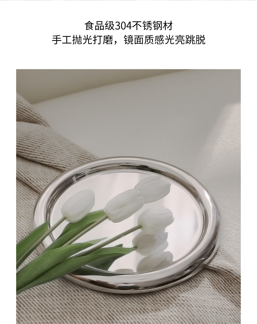 창조적 인 높은 가치 플레이트 스테인레스 스틸 라운드 트레이 바 식사 트레이 레스토랑 과일 플레이트 가정용 크리에이티브 스토리지 플레이트스토어 가기