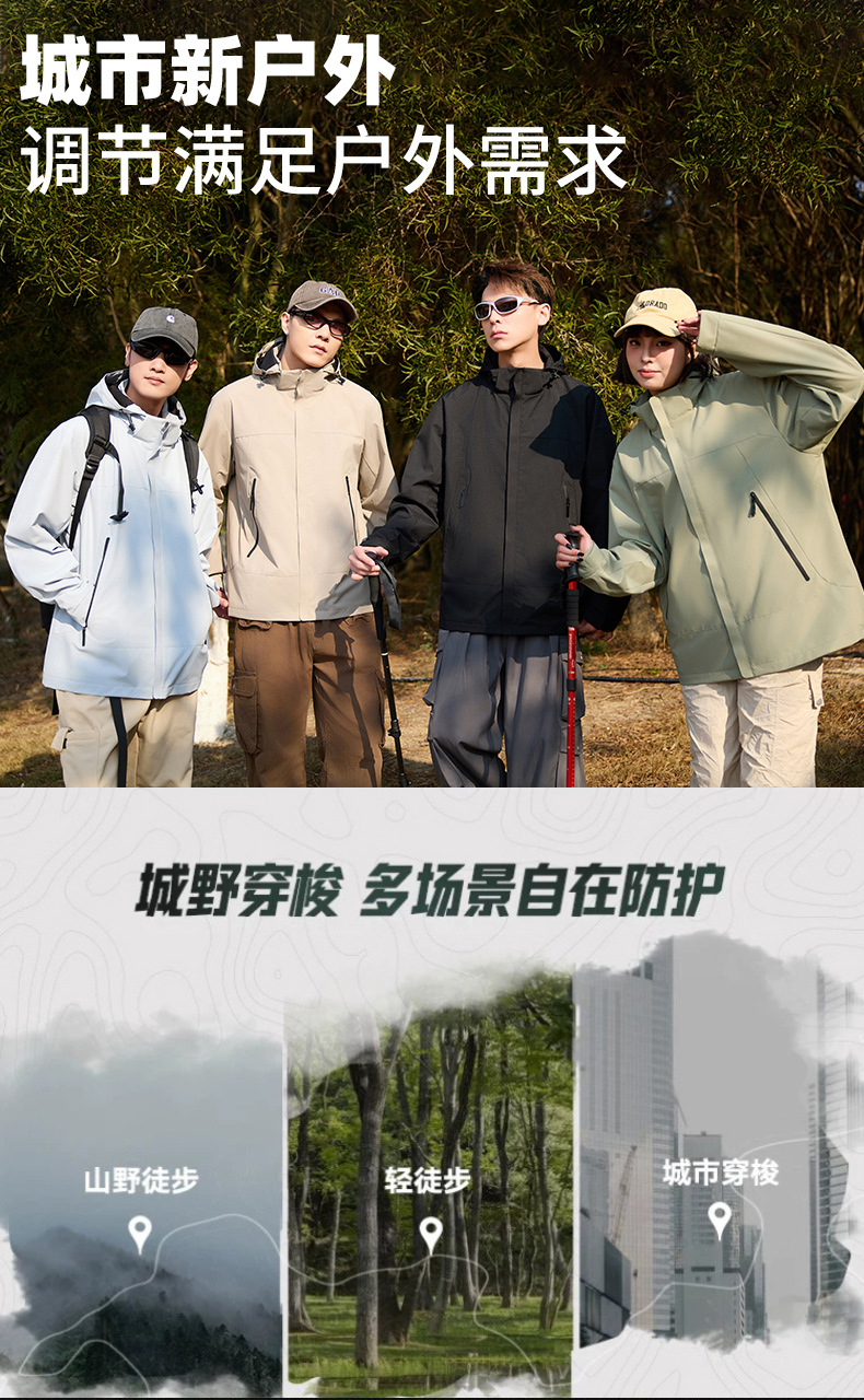 도시 기능성 재킷 여성의 새로운 야외 싱글 레이어 재킷 남자의 유행 산 방풍 물 튀는 커플의 등산 세트스토어 가기