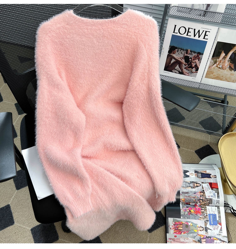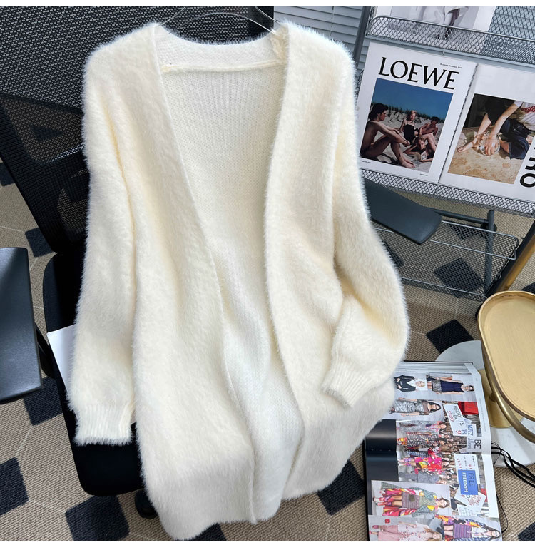 2024 가을과 겨울 새로운 니트 카디건 스웨터 여성 모방 밍크 벨벳 긴 느슨한 코트 게으른 스타일 코트스토어 가기