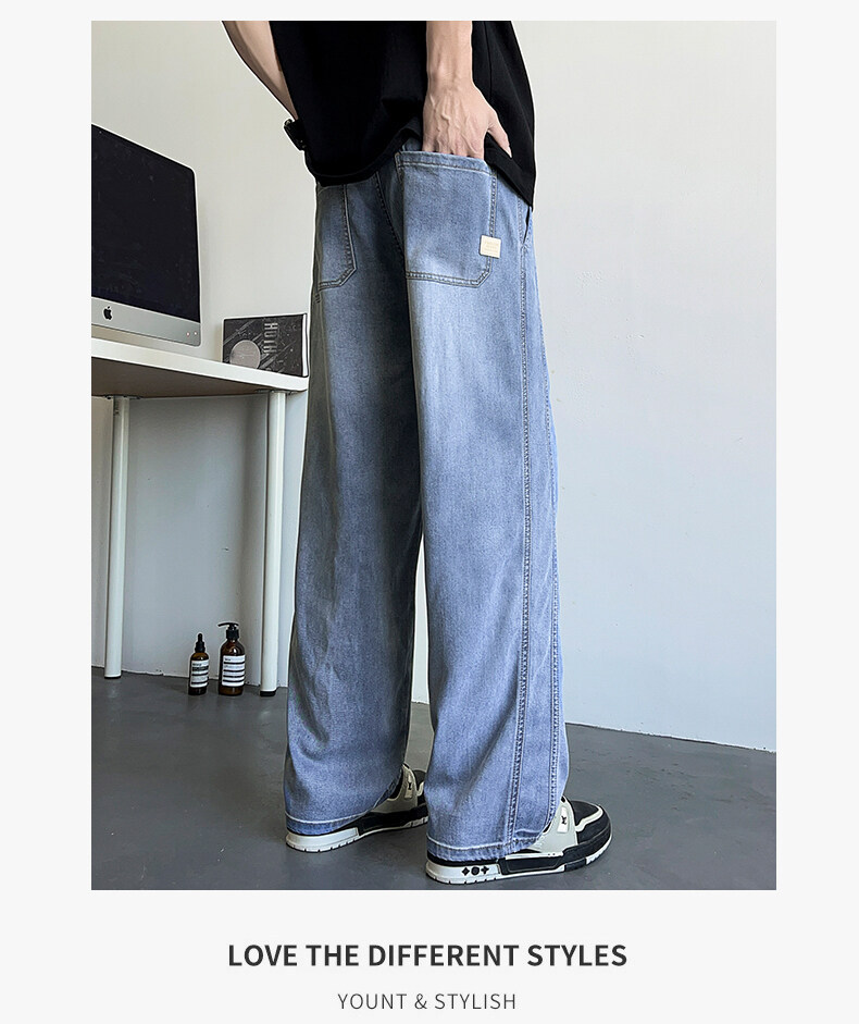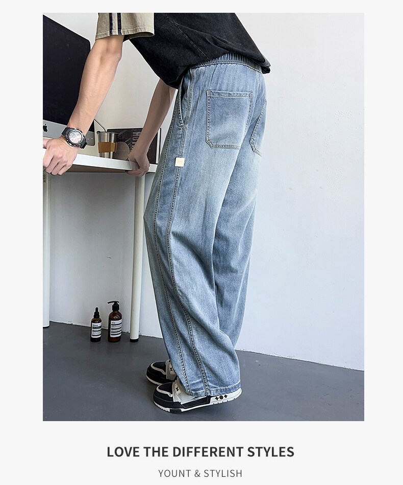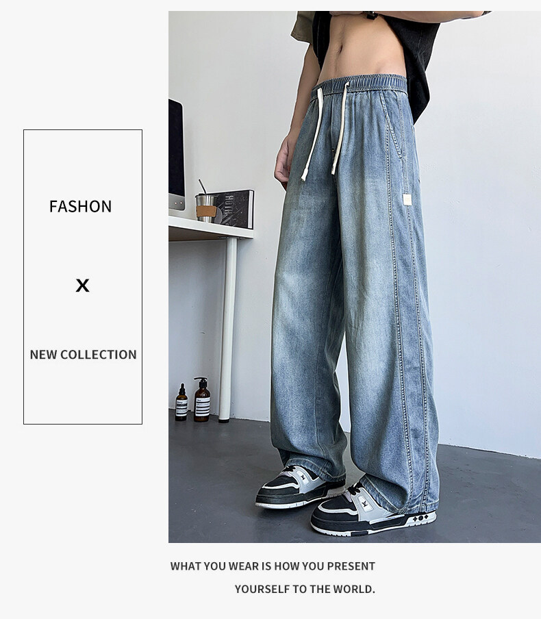 2025 여름 남성용 얇은 청바지, 루즈하고 시원하며 부드럽고 패셔너블하며 다재다능한 스트레이트 팬츠, 신축성 있는 바지, 캐주얼 팬츠스토어 가기