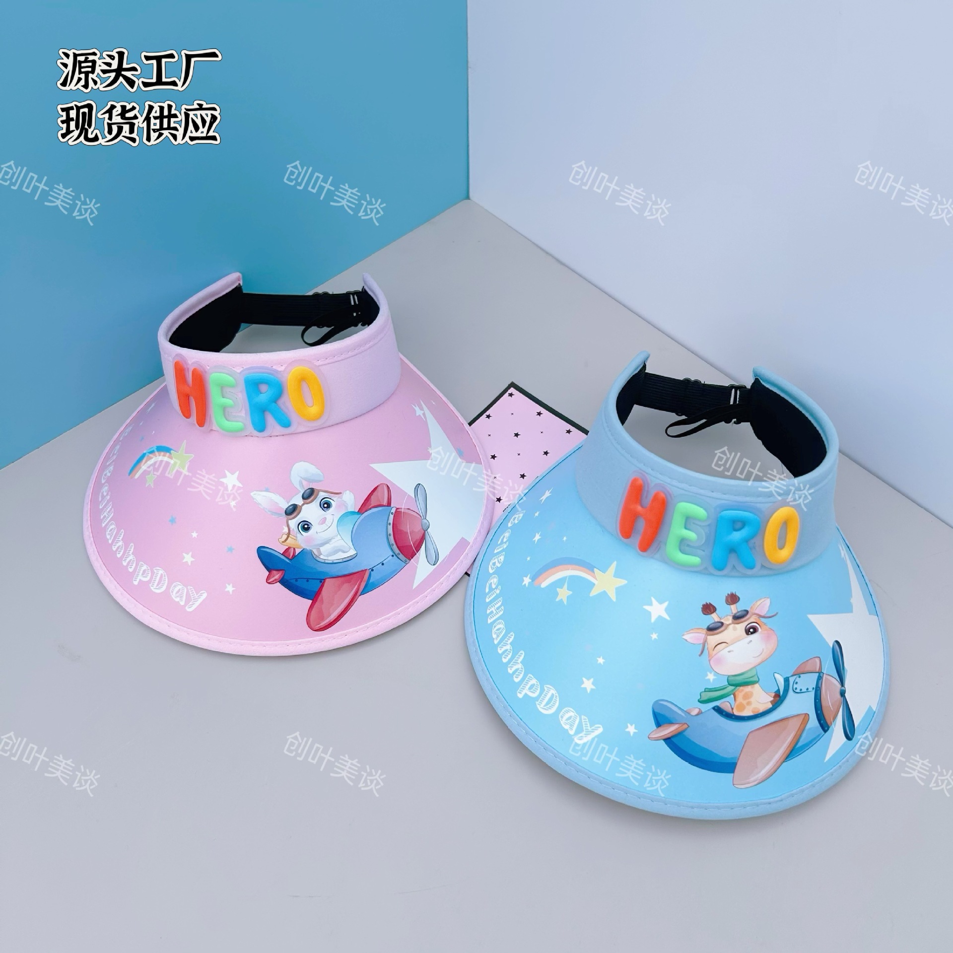소년과 소녀를위한 새로운 만화 빈 탑 모자 대형 브림 선 스크린 캡 롤링 태양 모자 야외 여행 태양 모자스토어 가기