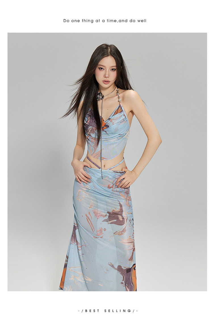 순수한 욕망 스파이스 소녀 수영복 여성용 복고풍 인쇄 슬링 섹시 비치 롱 원피스 3 피스 세트 해변 휴일 사진 수영복스토어 가기