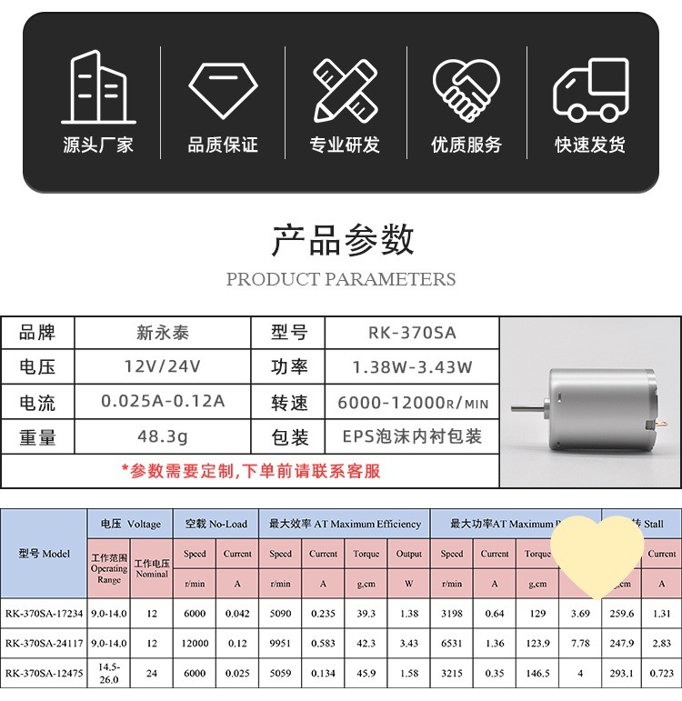 슈퍼 긴 수명 높은 전력 R-370 DC 브러시 마이크로 고속 모터 작은 모터 12v24v스토어 가기