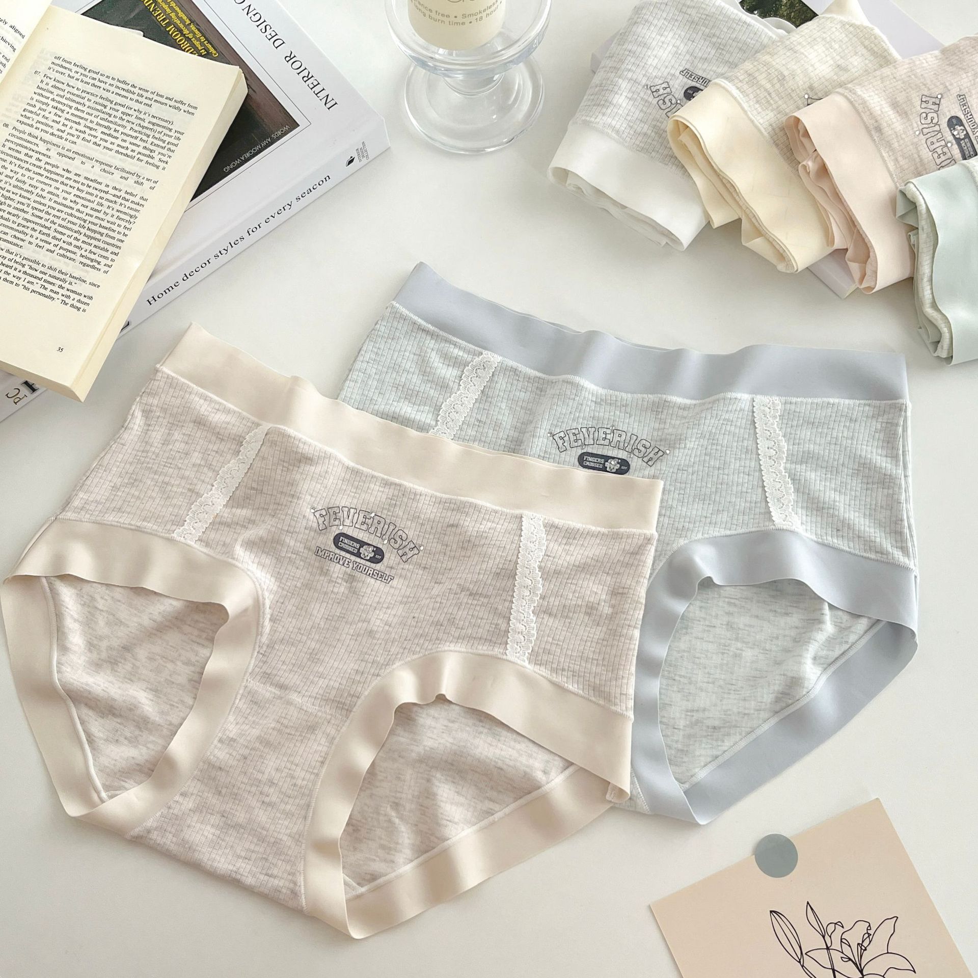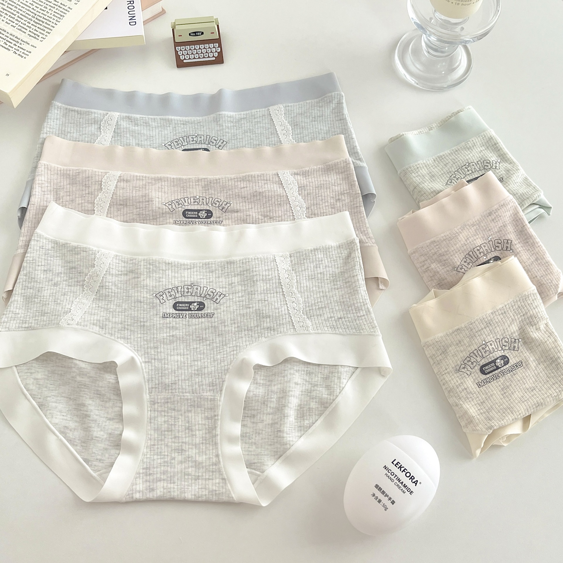 2812 스파클링 레이스 컬러 코튼 속옷 여성의 중간 허리 시리즈 패션 인쇄 된 편지 컬러 부드러운 바지 소녀 반바지