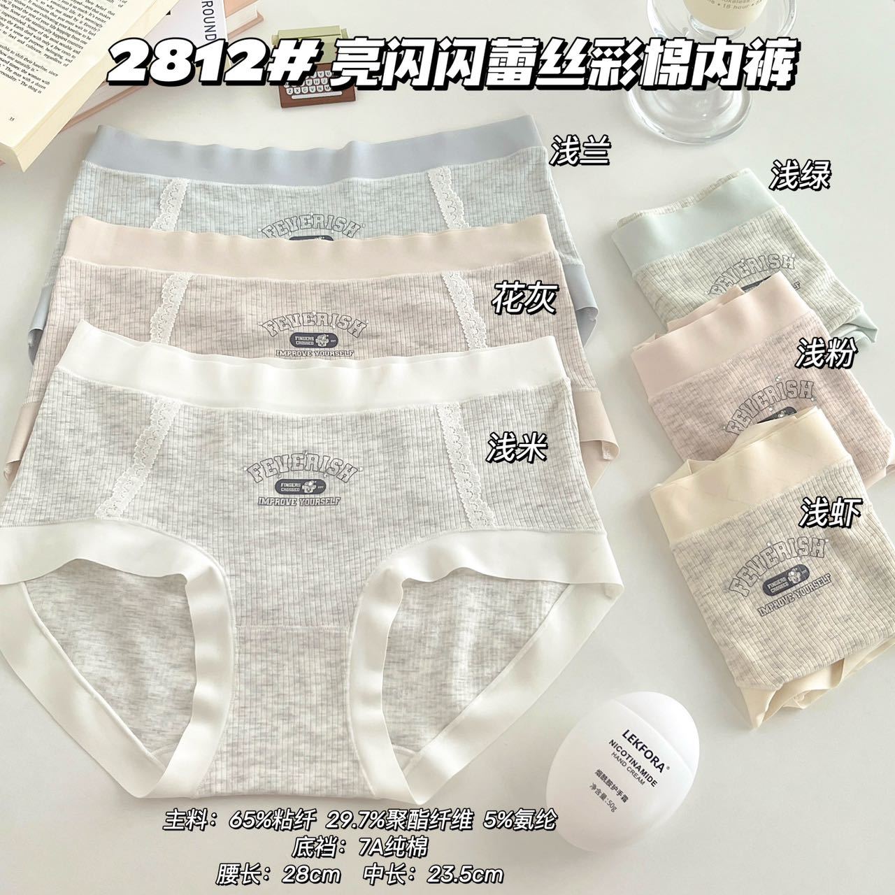 2812 스파클링 레이스 컬러 코튼 속옷 여성의 중간 허리 시리즈 패션 인쇄 된 편지 컬러 부드러운 바지 소녀 반바지스토어 가기