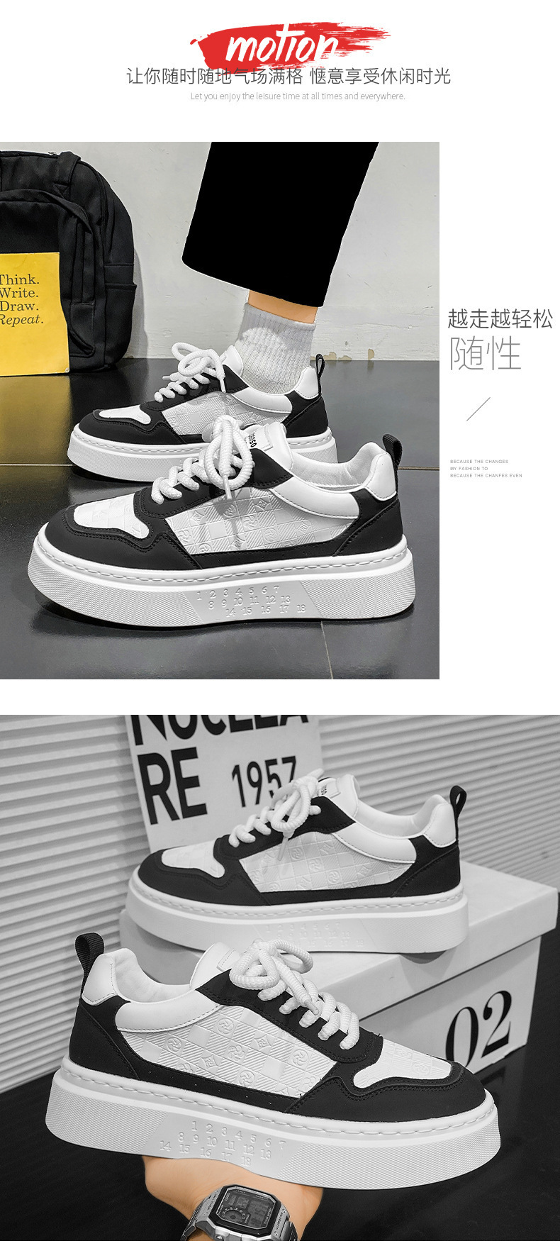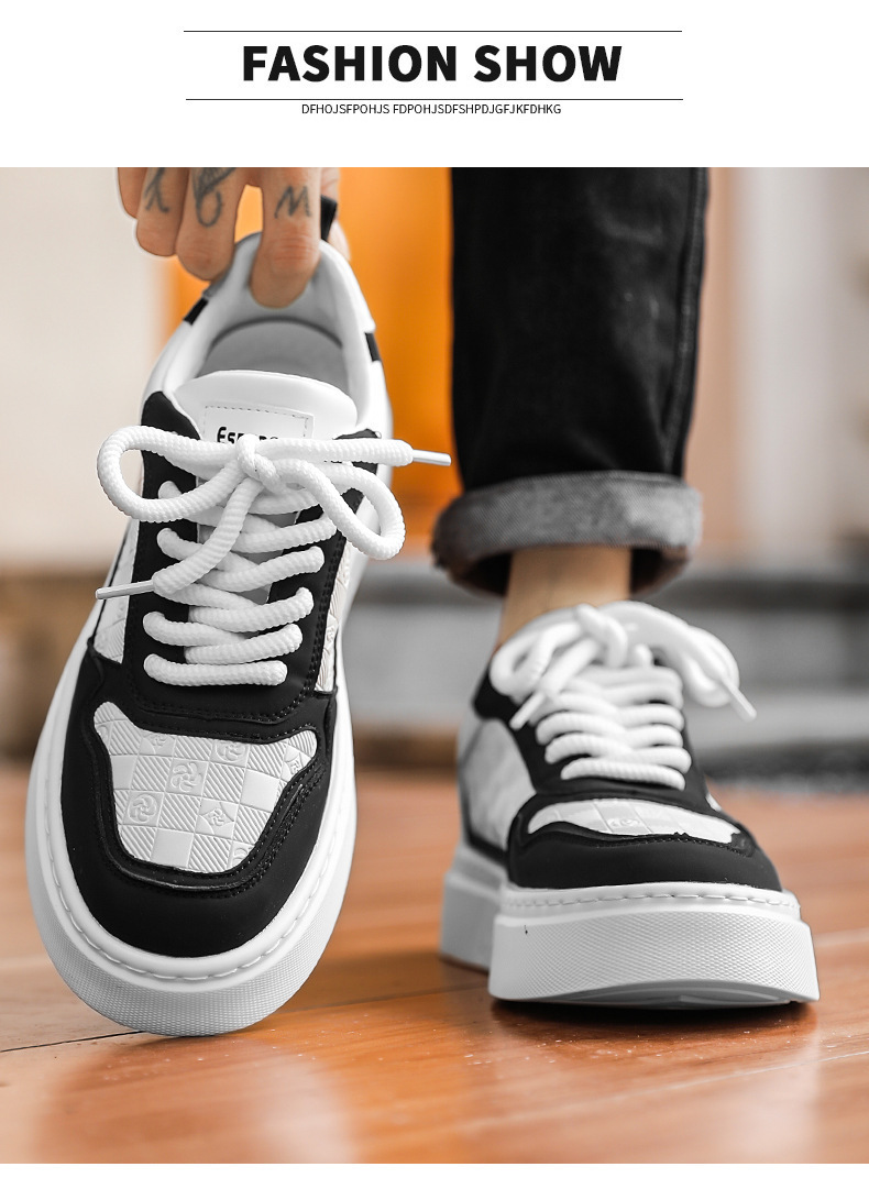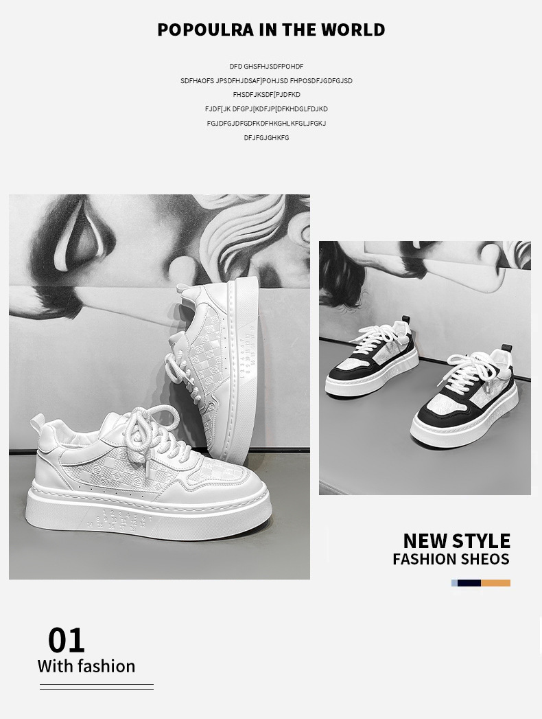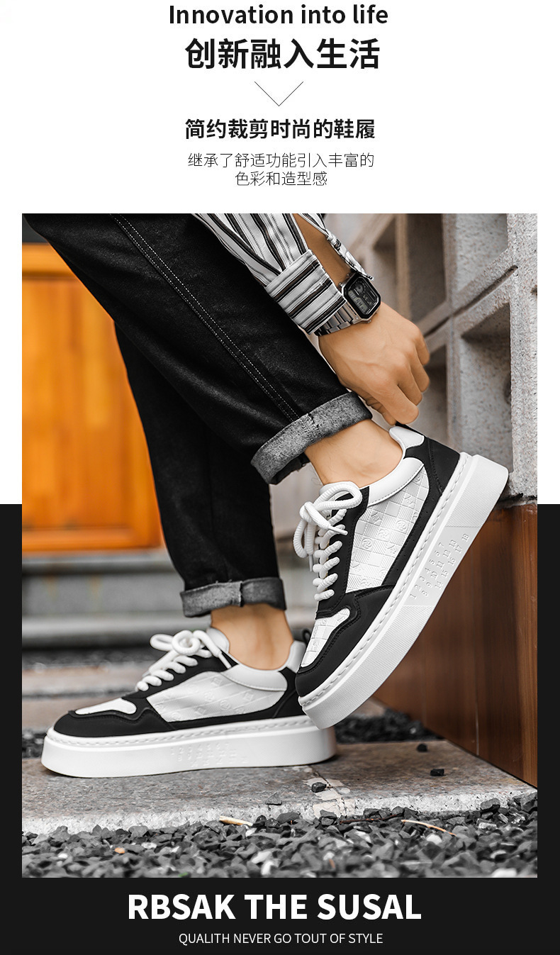 남자 신발 2024 가을 새로운 유행 올 매치 가죽 캐주얼 신발 남성 스포츠 스니커즈 증가 화이트 브로케이드스토어 가기