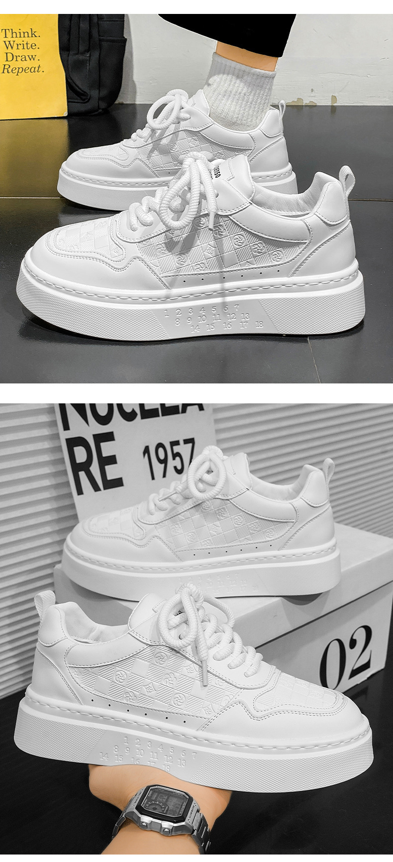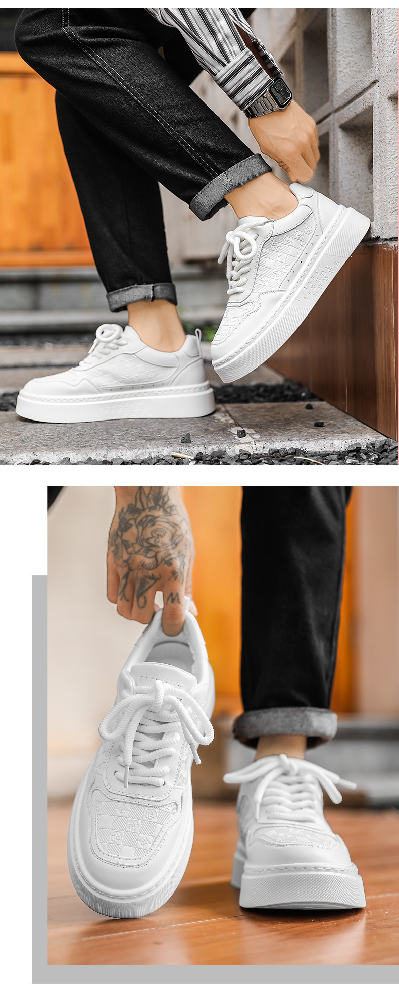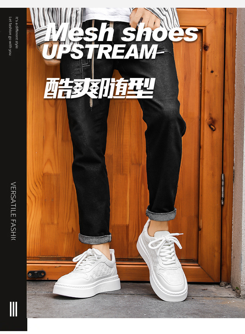 남자 신발 2024 가을 새로운 유행 올 매치 가죽 캐주얼 신발 남성 스포츠 스니커즈 증가 화이트 브로케이드