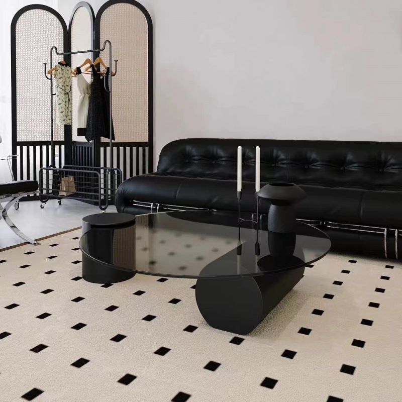 현대 강화 유리 커피 테이블 거실 홈 발코니 차 테이블 창조적 인 기하학적 예술 라운드 차 테이블