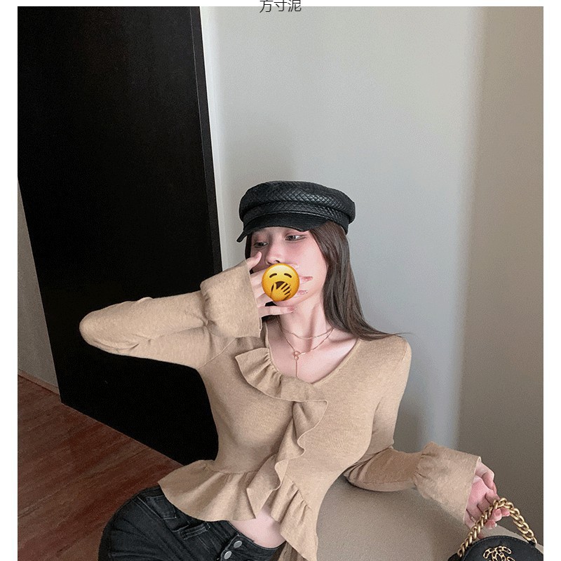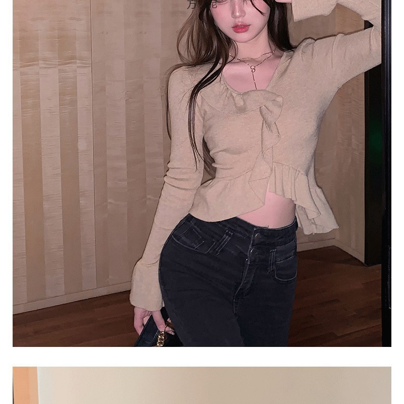 2024 가을과 겨울 새로운 스웨터 느낌 틈새 주름 뿔 소매 불규칙한 긴 소매 바닥 최고 도매스토어 가기