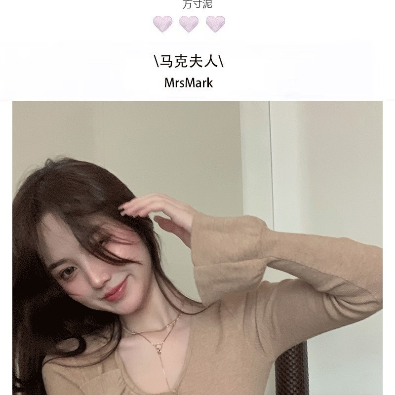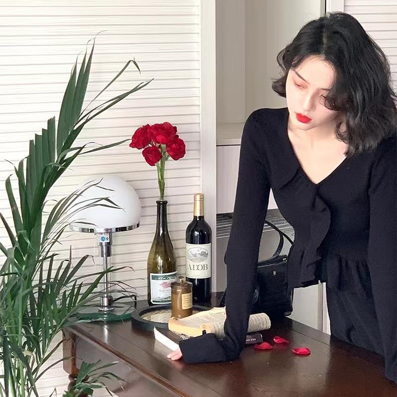 2024 가을과 겨울 새로운 스웨터 느낌 틈새 주름 뿔 소매 불규칙한 긴 소매 바닥 최고 도매