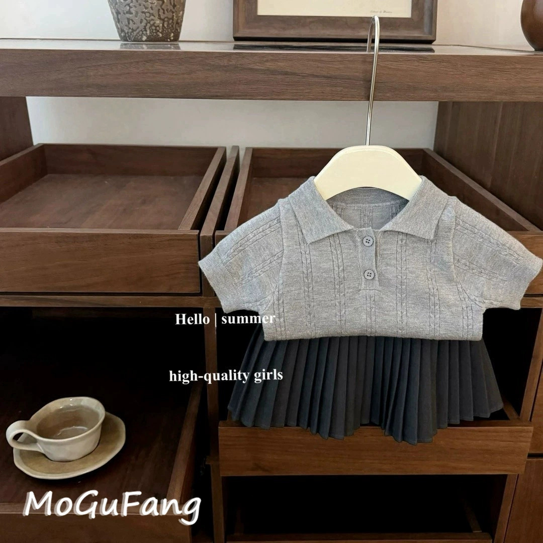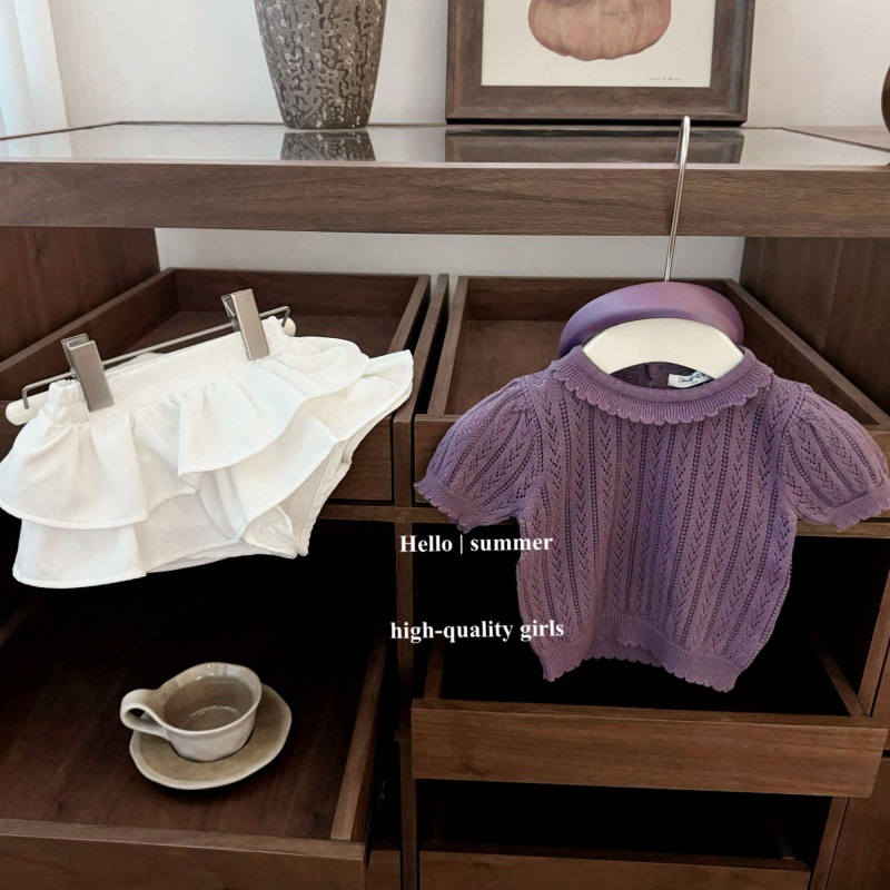2025 여름 아동복 소녀 보라색 발레 아기 소녀 중공 레이스 니트 탑 공주 케이크 치마 세트스토어 가기