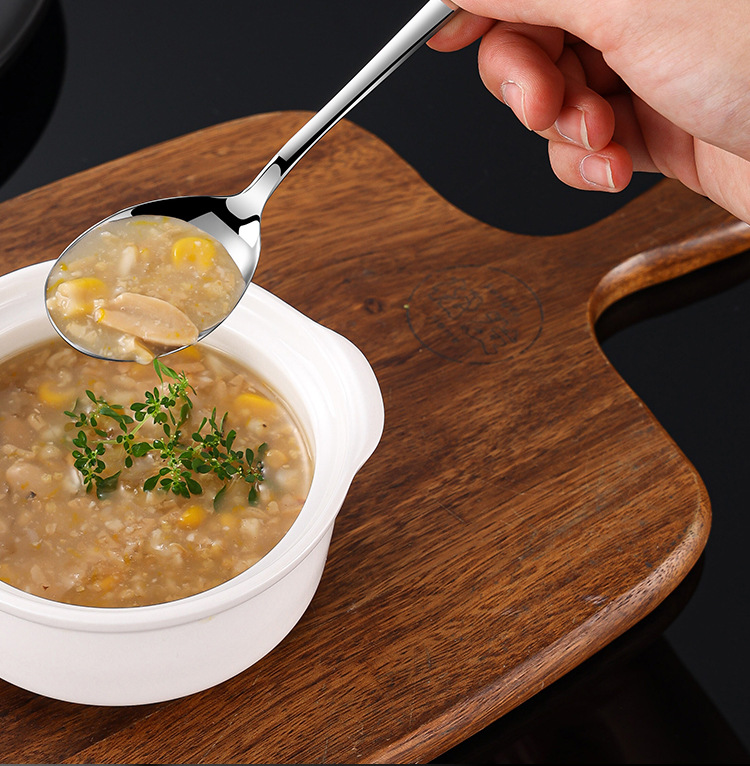 316L 스테인리스 스틸 숟가락 가정용 두꺼운 믹싱 스푼 한국식 긴 손잡이 스푼 어린이용 식사용 스푼 수프 스푼 도매스토어 가기
