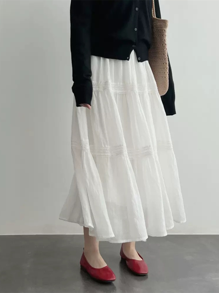 고급 화이트 A 라인 스커트 여자 여름 중장 슈퍼 페어리 젠틀 케이크 스커트 티 브레이크 프렌치 스커트