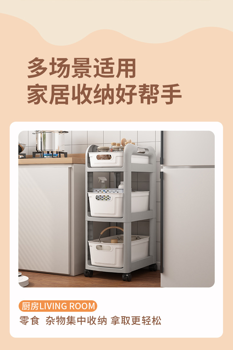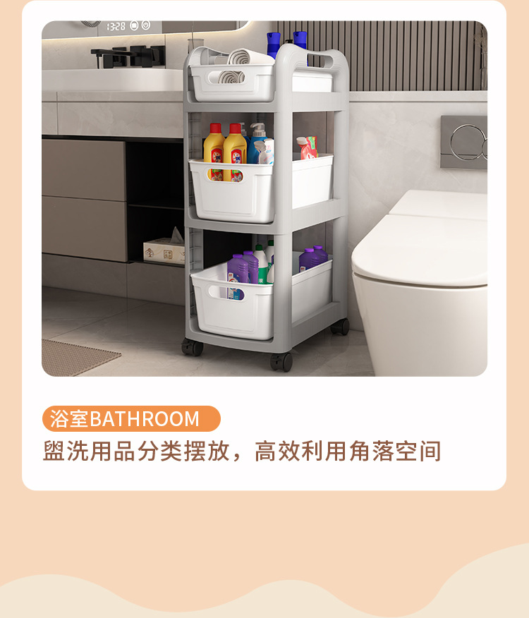 • [밀크티 화이트] 2단(바퀴 없음) - 작은 바구니 2개