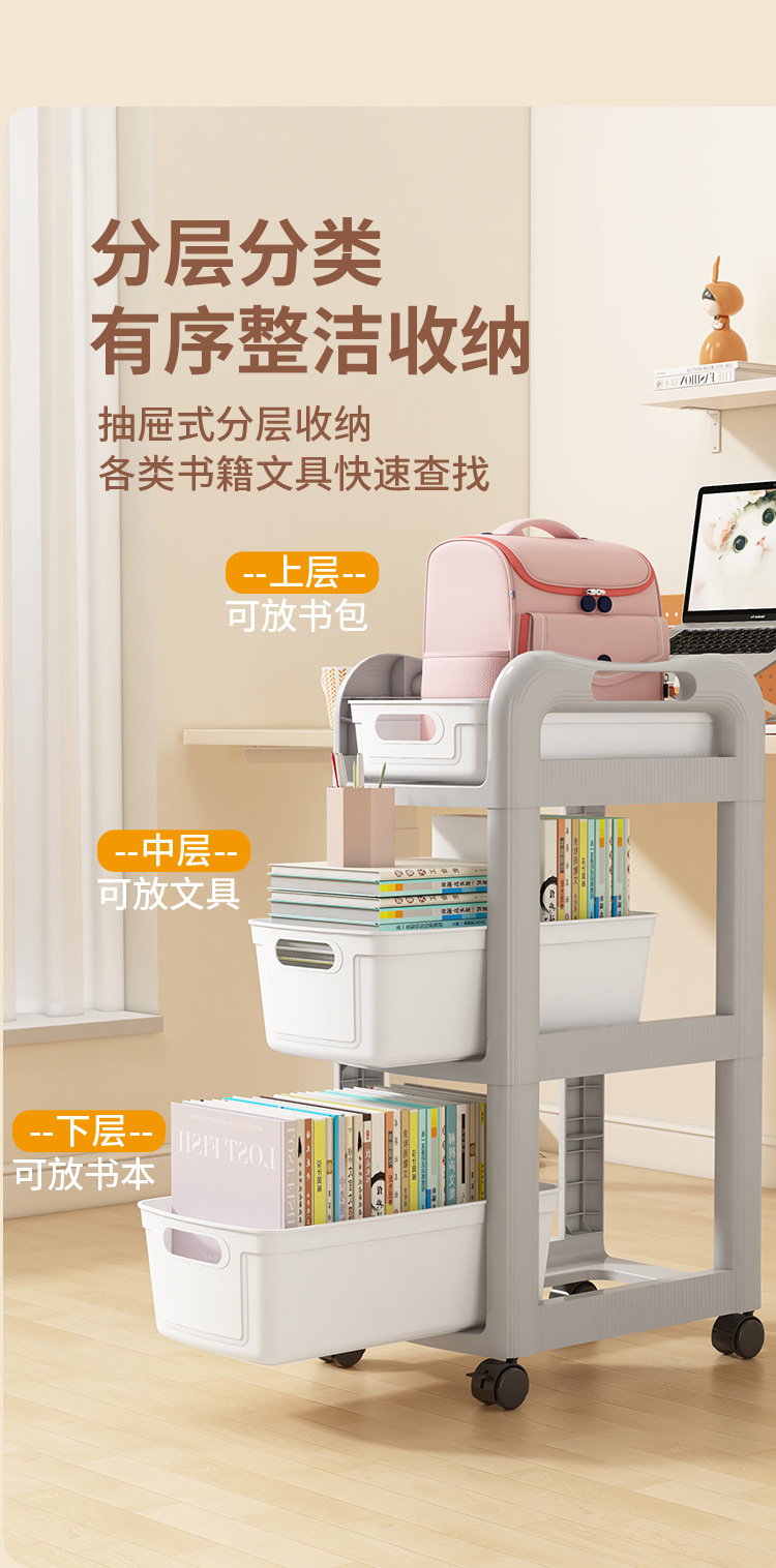 Schoolbag 스토리지 랙 이동식 카트 북 저장 아티팩트 가정용 다층 테이블 스토리지 랙 책꽂이