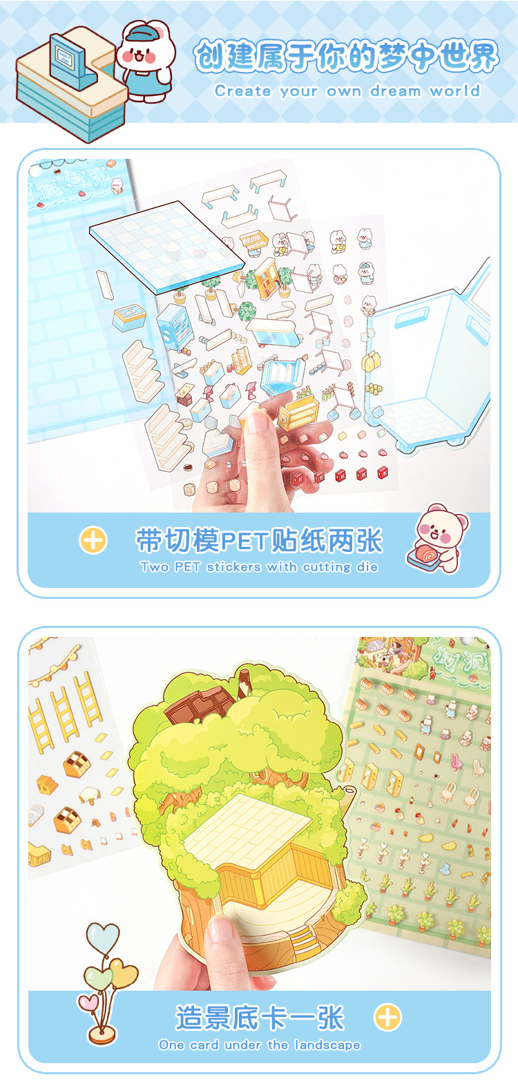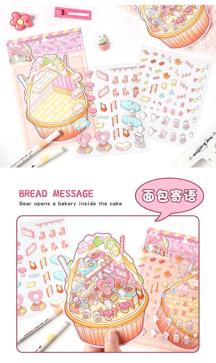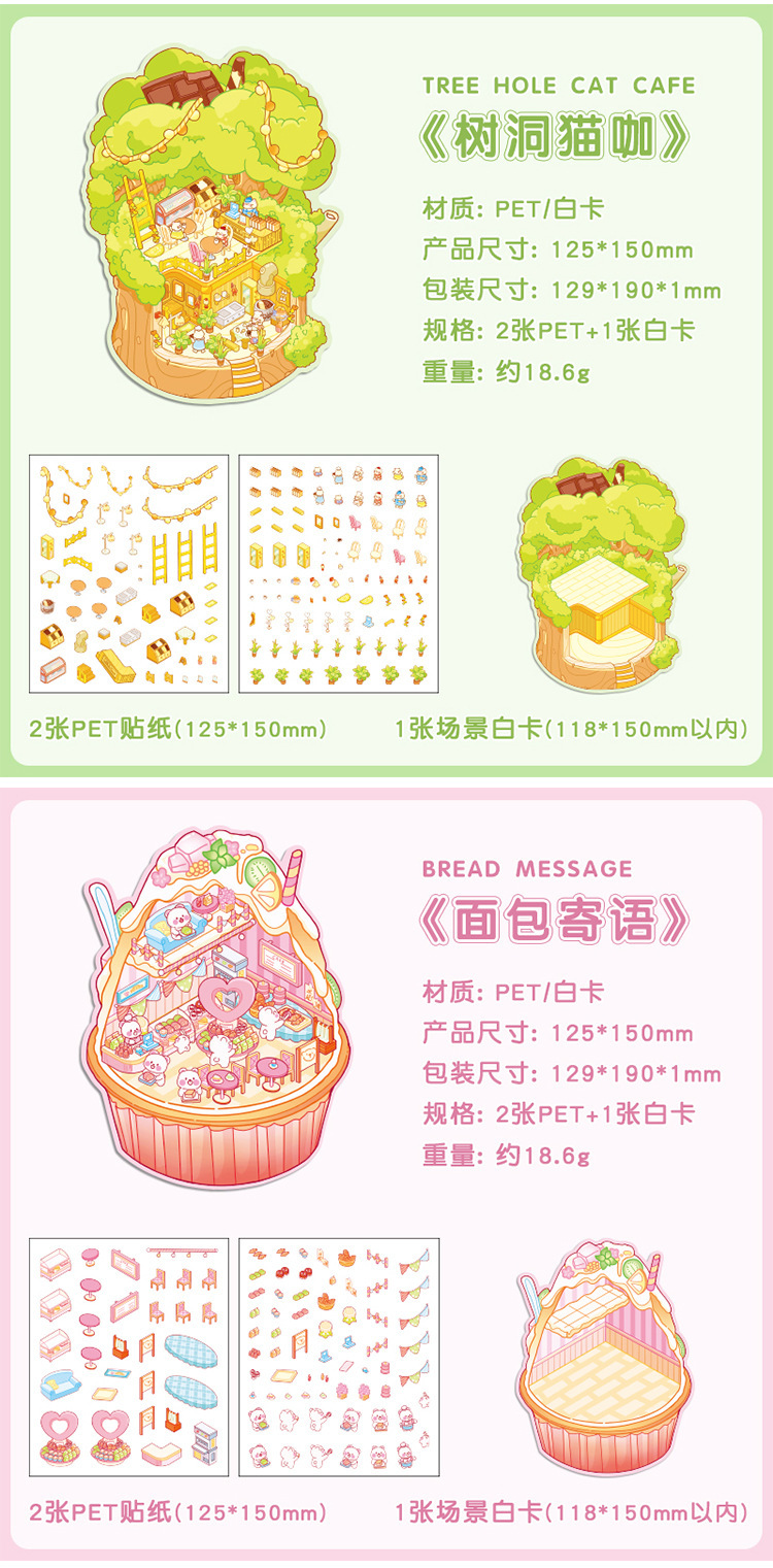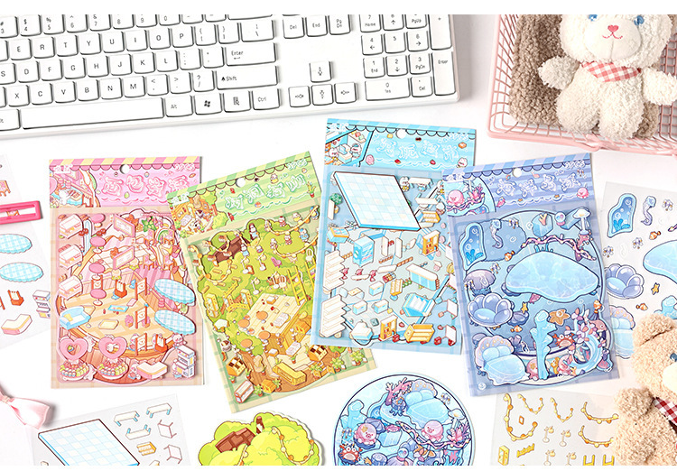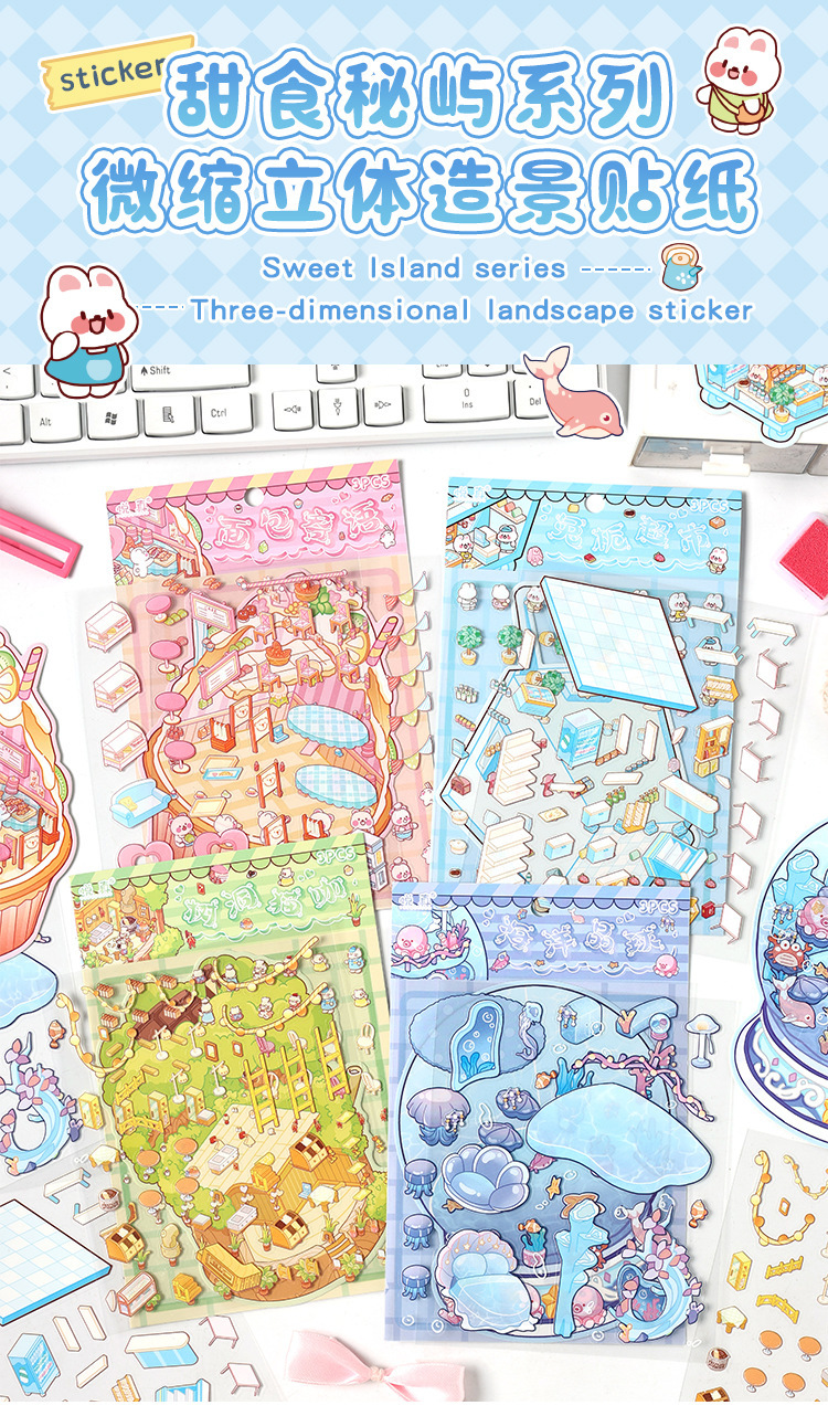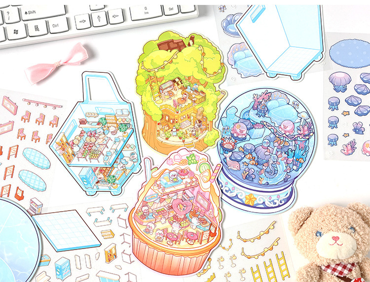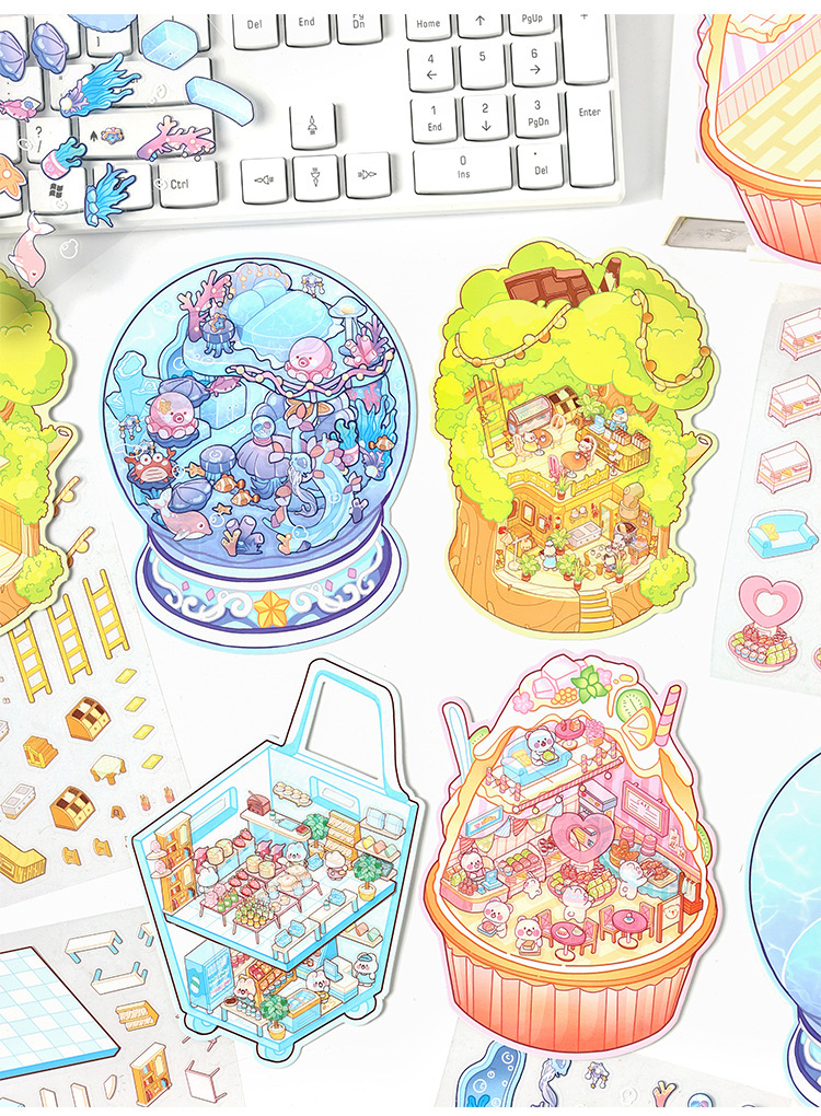 귀여운 디저트 Mi Yu 시리즈 조경 스티커 디저트 바다 공 나무 구멍 diy 미니어처 장면 3 차원 장식 스티커스토어 가기