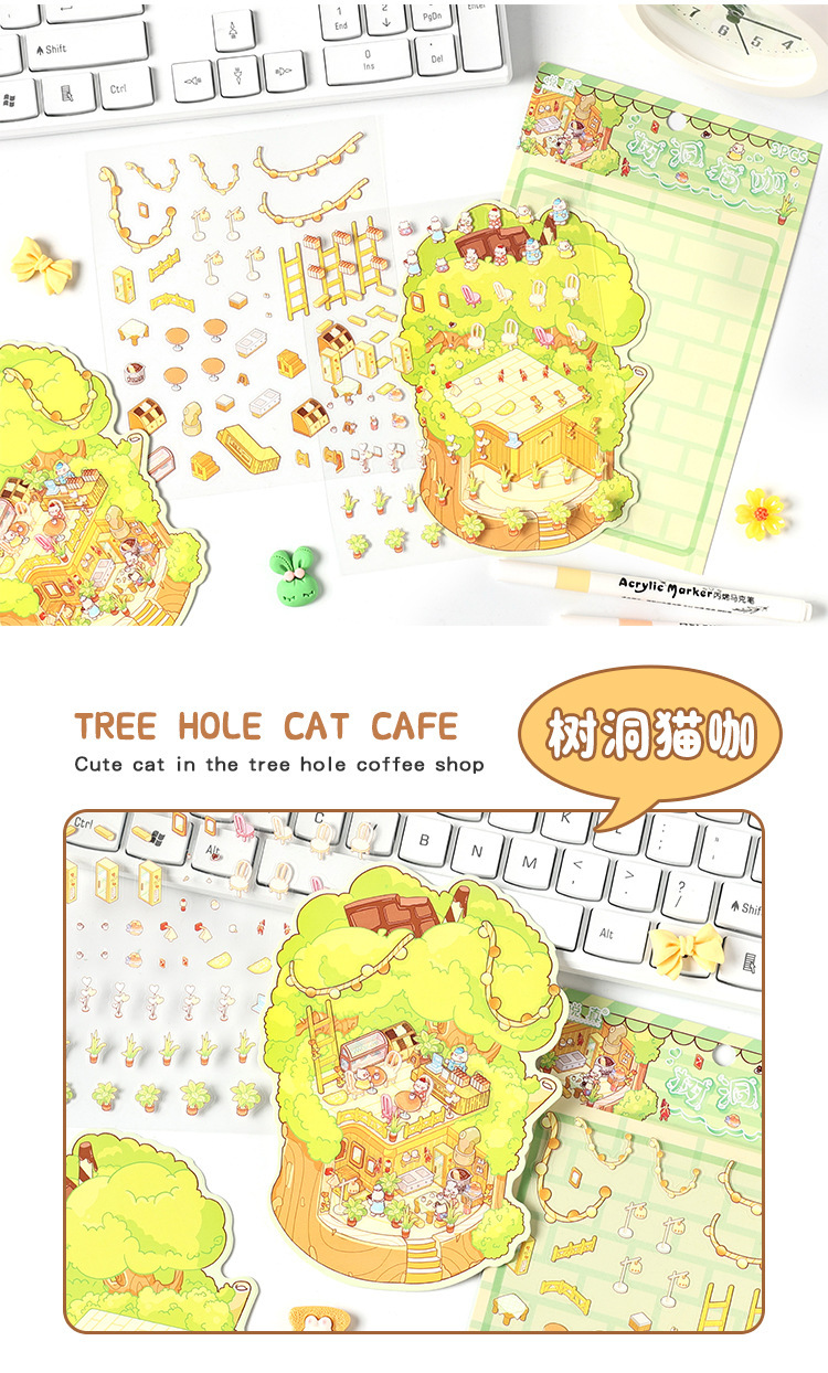 귀여운 디저트 Mi Yu 시리즈 조경 스티커 디저트 바다 공 나무 구멍 diy 미니어처 장면 3 차원 장식 스티커