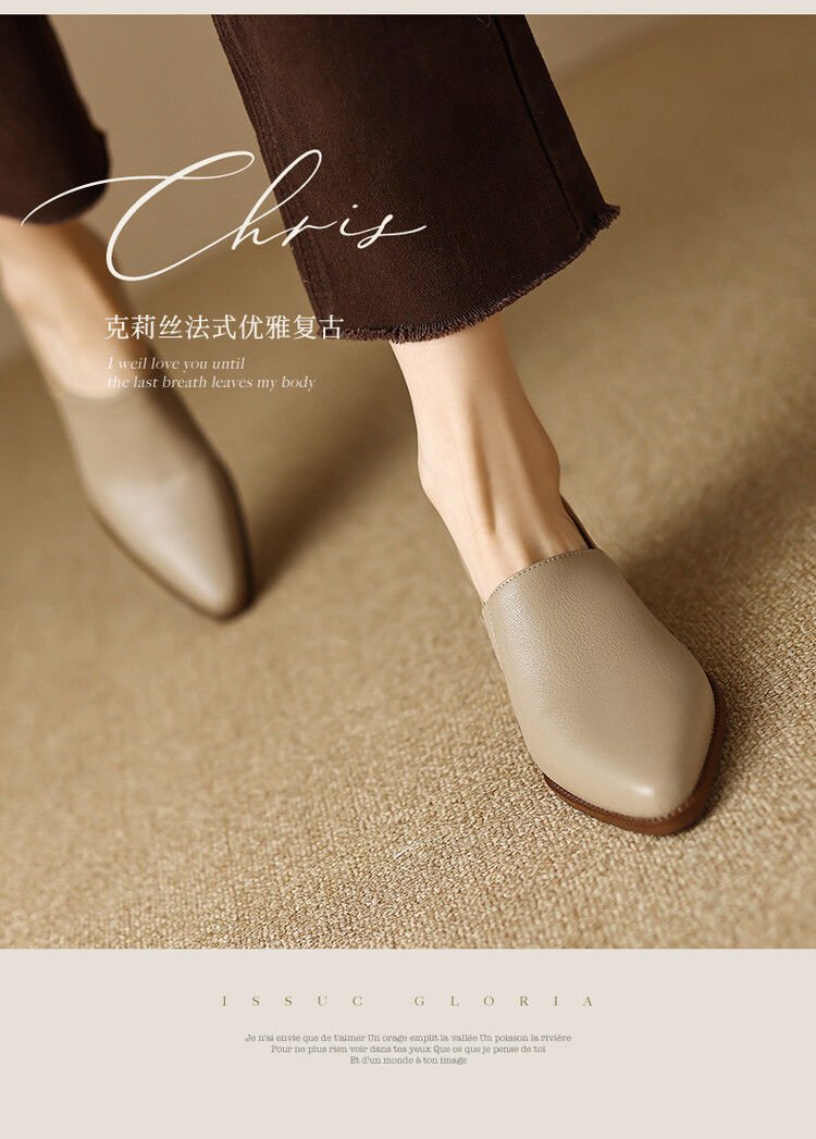 여성용 우아한 얕은 구두 2025 봄 신상 두꺼운 굽 뾰족한 앞코 복고풍 작은 가죽 신발 여성용 슬립온 미드힐스토어 가기