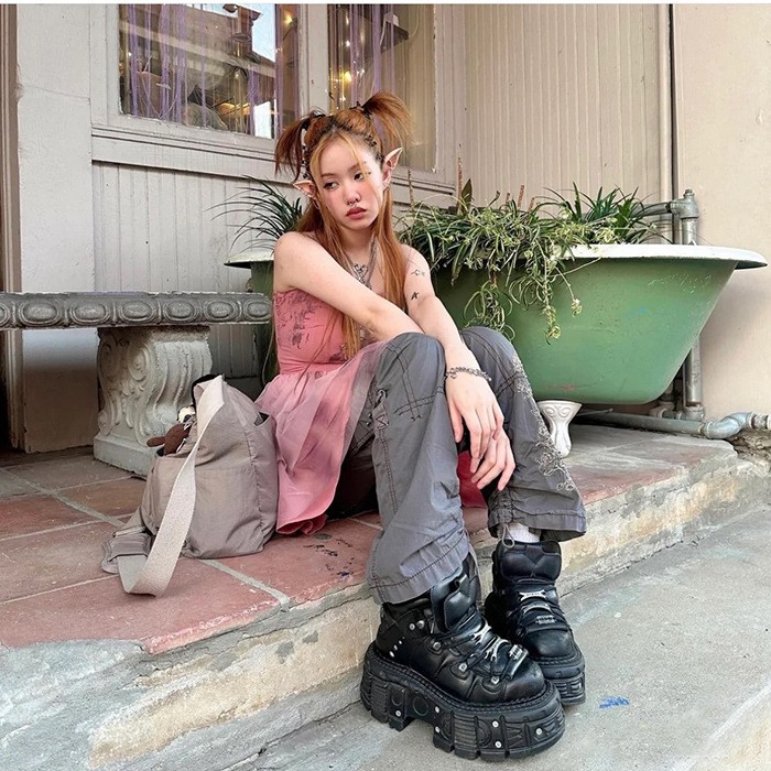 빈티지 스페인 탱크 단독 금속 하이 탑 신발 카우보이 두꺼운 밑창 작은 가죽 신발 다크 펑크 플랫폼 단독 싱글 레이어 신발 여성용스토어 가기
