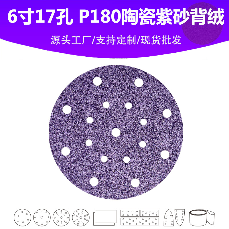 6 인치 17 홀 세라믹 보라색 모래 P180 메시 몰려 드는 웨이퍼 페인트 표면 연마 하이 퀄리티 모래
