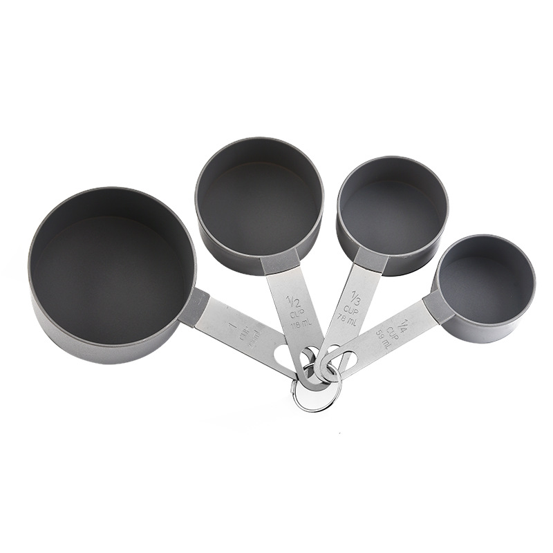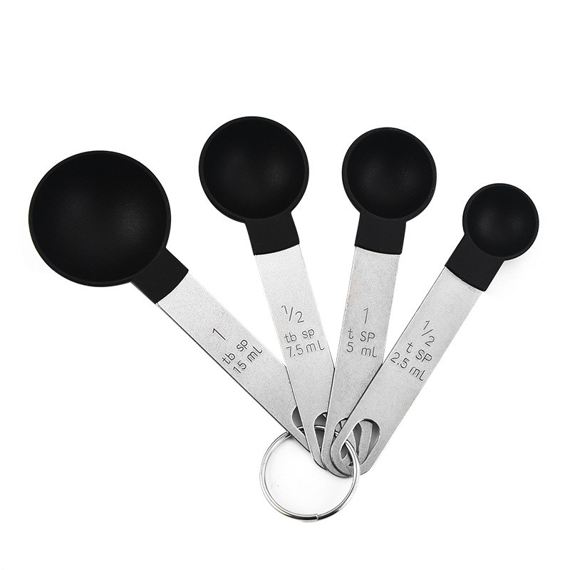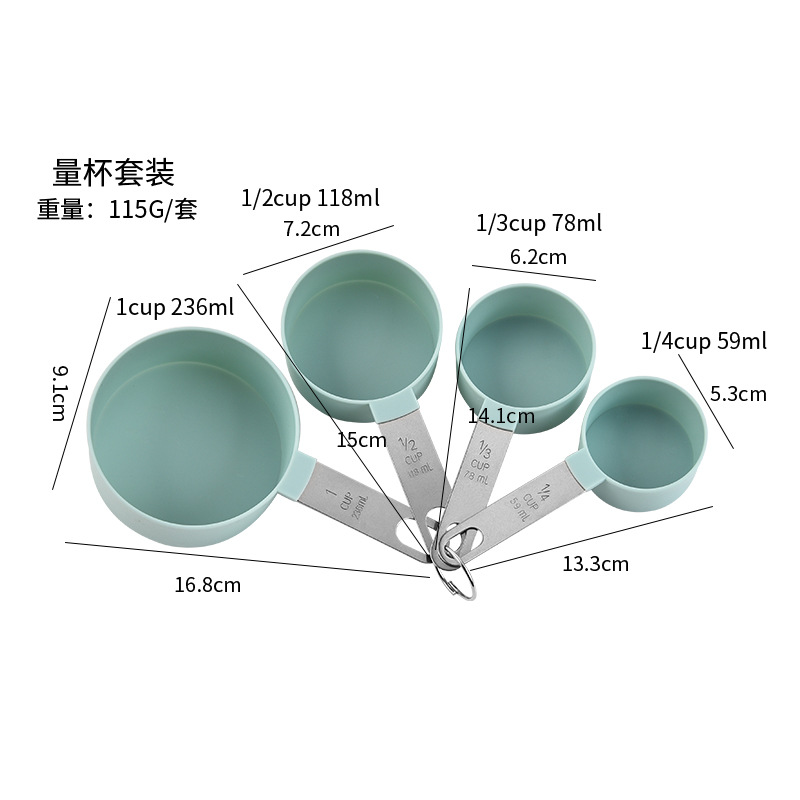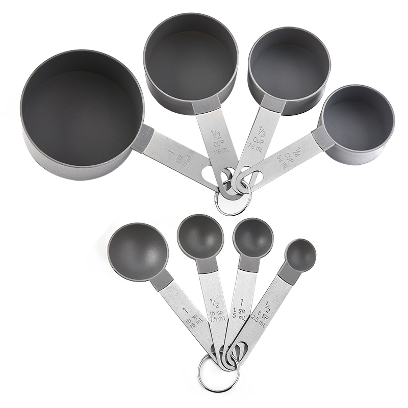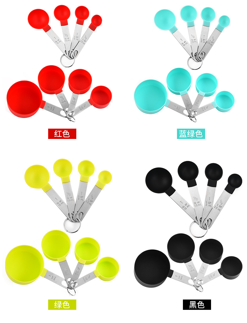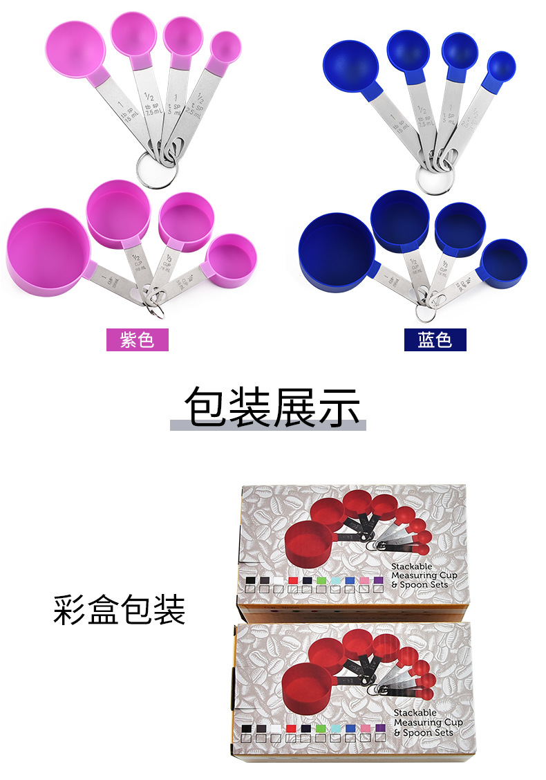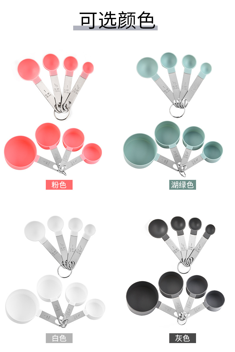 430 스테인레스 스틸 핸들 측정 숟가락 플라스틱 측정 컵 8 조각 세트 스케일 측정 숟가락 세트 베이킹 도구 도매