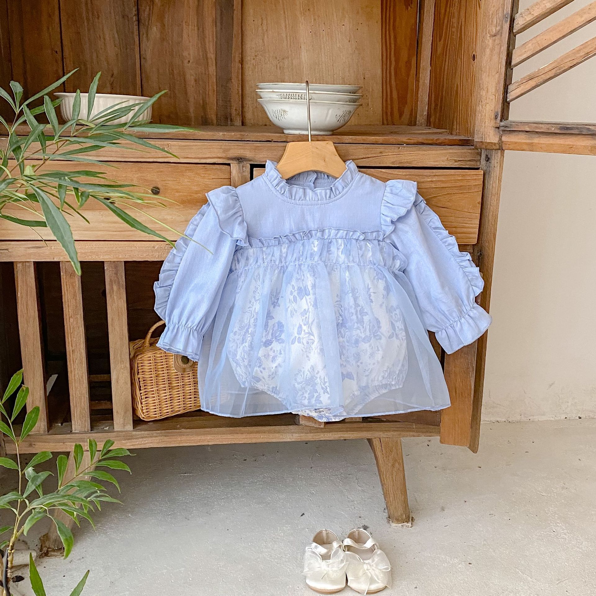 2025 봄 새로운 아기 소녀 달콤한 공주 원피스 메쉬 바느질 귀 삼각형 가방 뚱뚱한 원피스스토어 가기