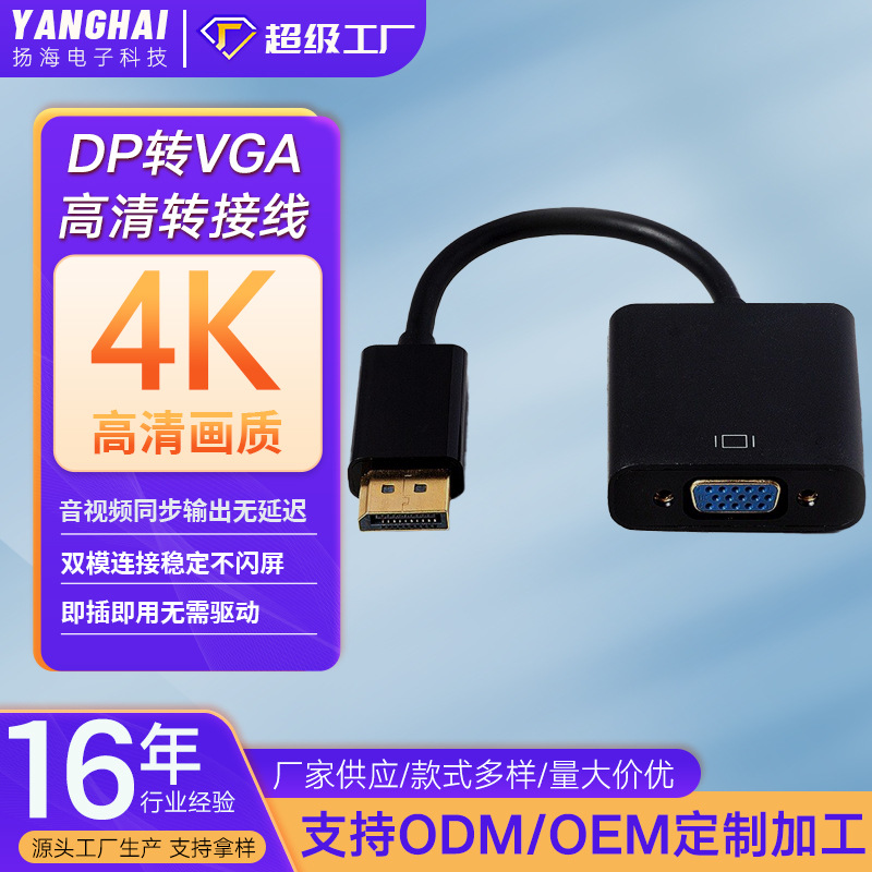 Yanghai HD 컴퓨터 그래픽 카드 인터페이스 dp vda 라인 vja HD 변환기를 표시하도록 연결된 vga 어댑터스토어 가기