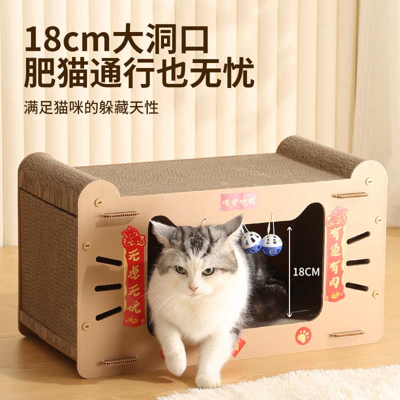 4.采用瓦楞纸材质,适合猫咪磨爪天性,耐磨且能缓解猫咪抓挠家具的行为,保护家居环境 。