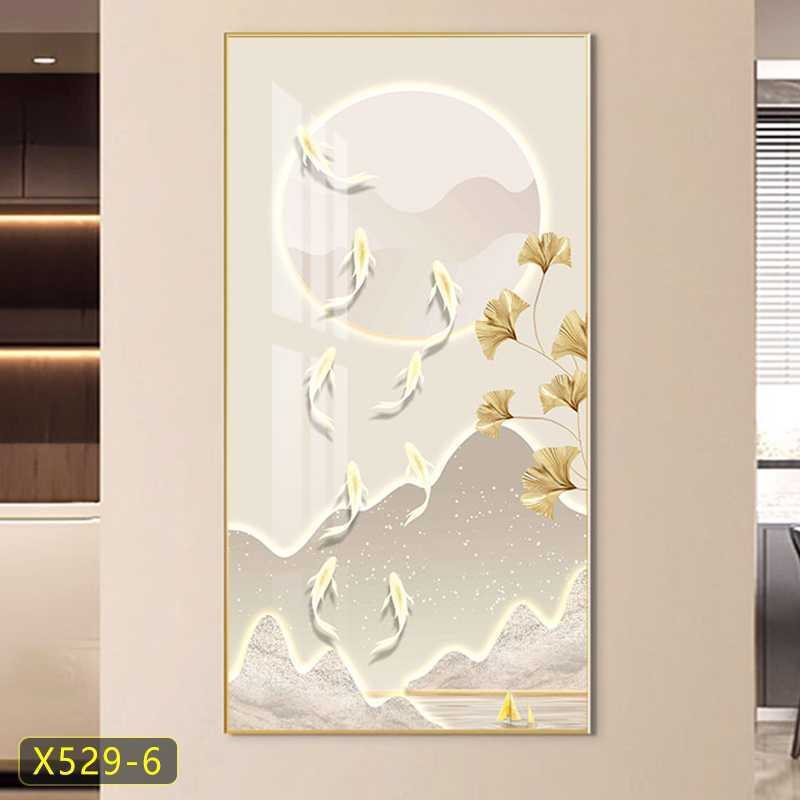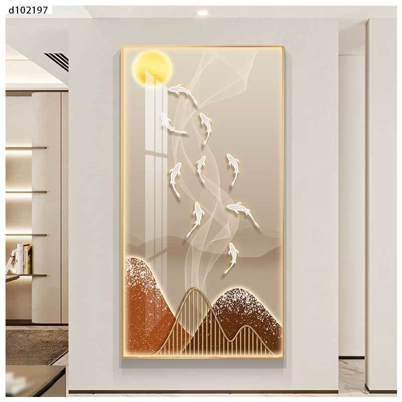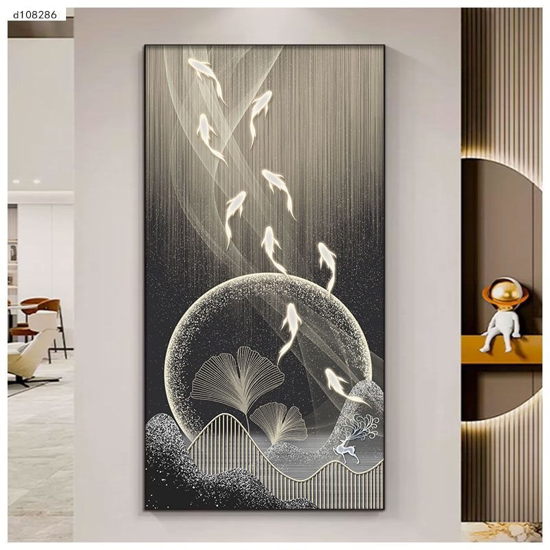 9 개의 물고기 그림 복도 루킹 장식 그림 현대 빛 럭셔리 입구 문 복도 통로 고급 도자기 다이아몬드 그림