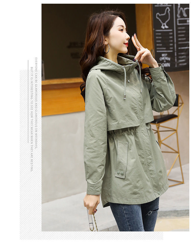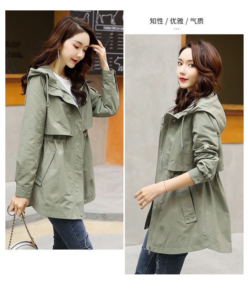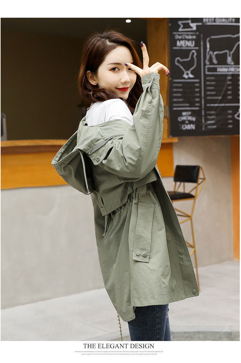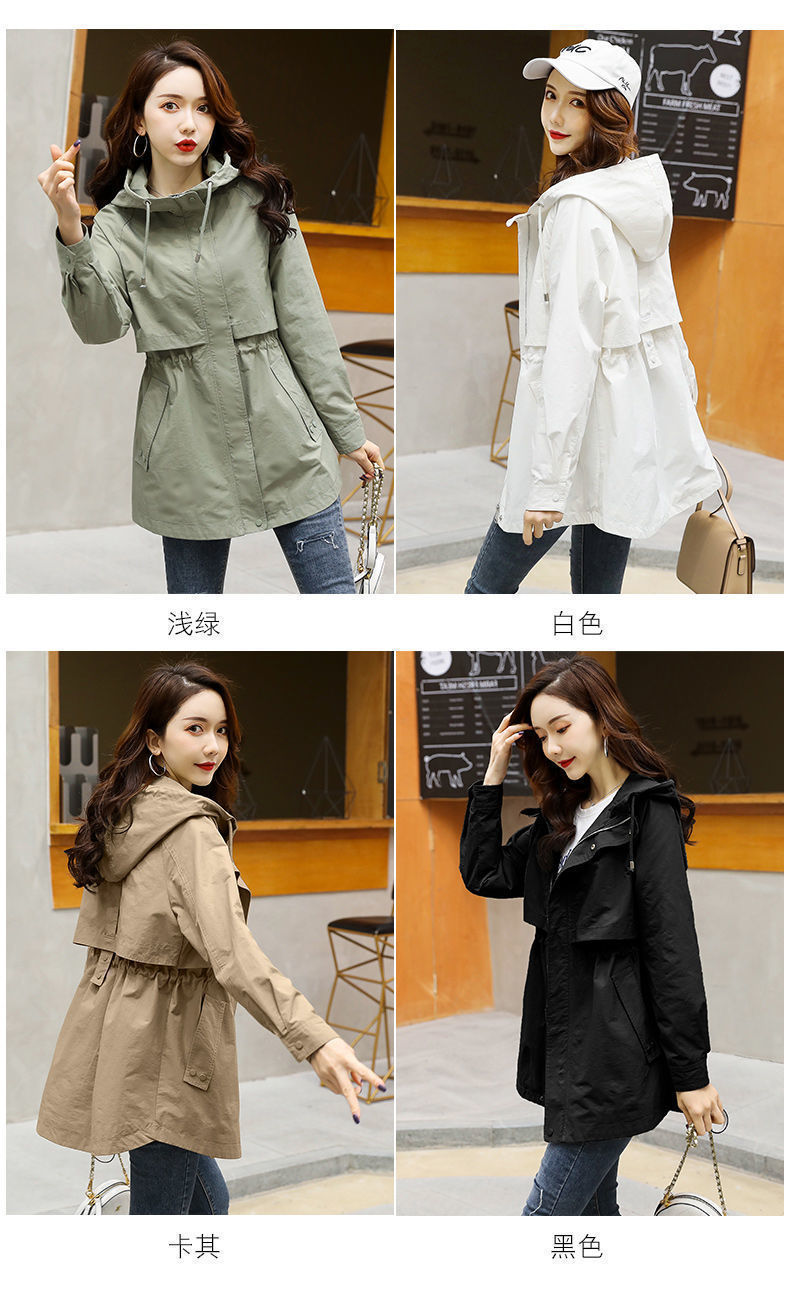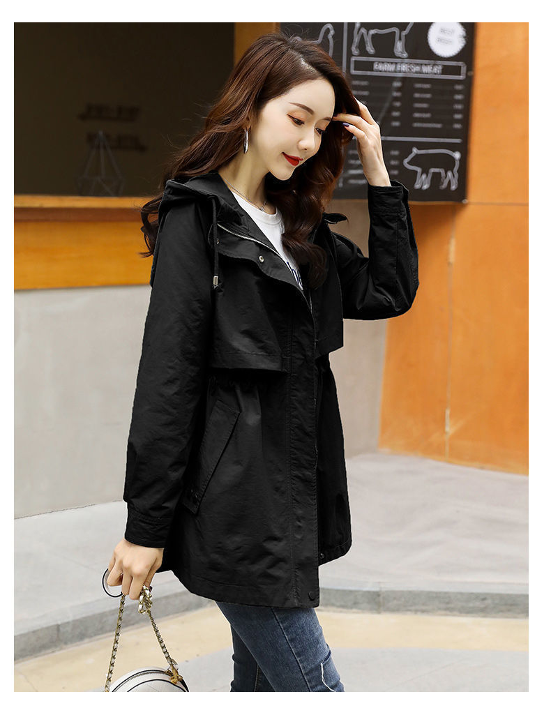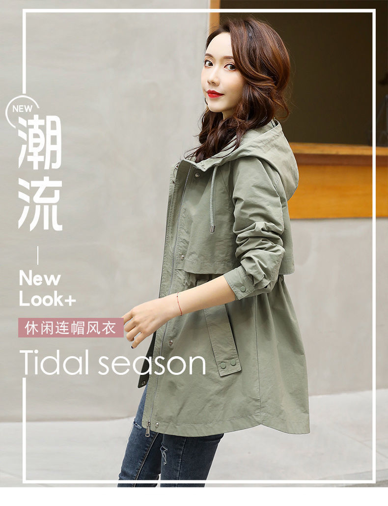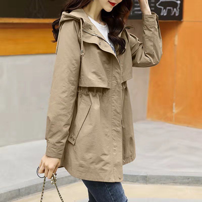캐주얼 작은 솔리드 컬러 코트 여성의 중간 길이 2024 봄 가을 겨울 새로운 느슨한 허리 후드 작업 코트스토어 가기