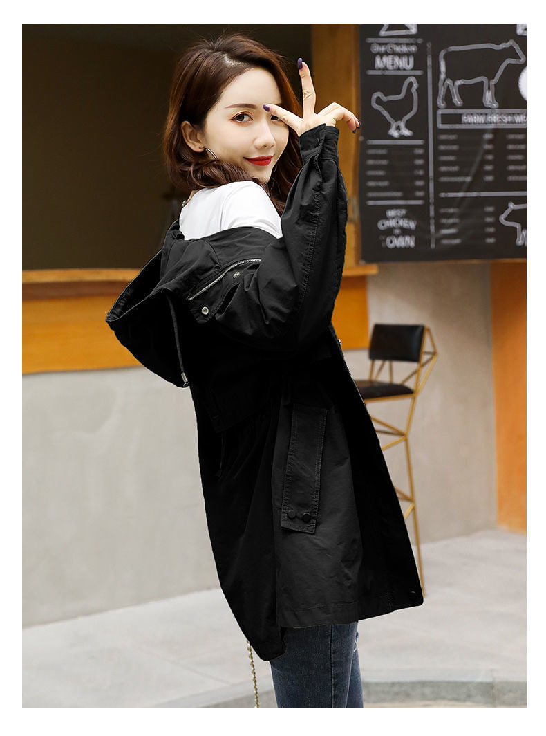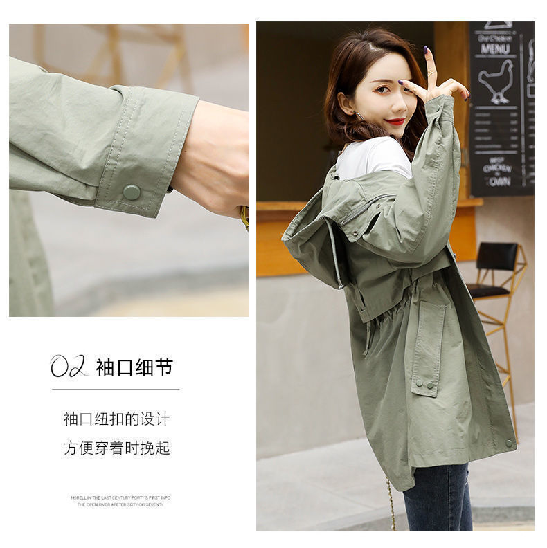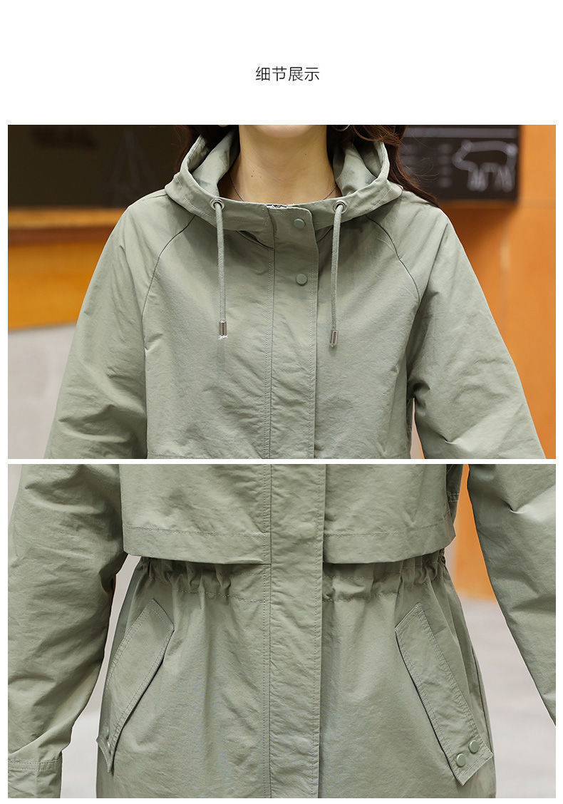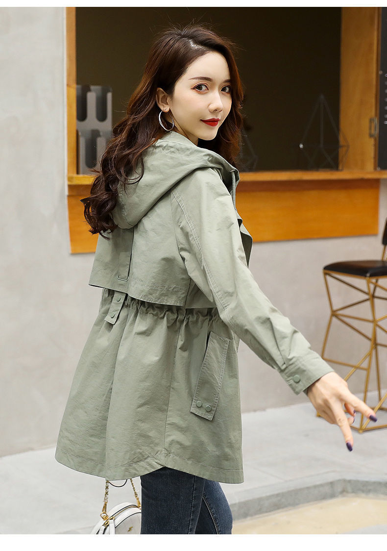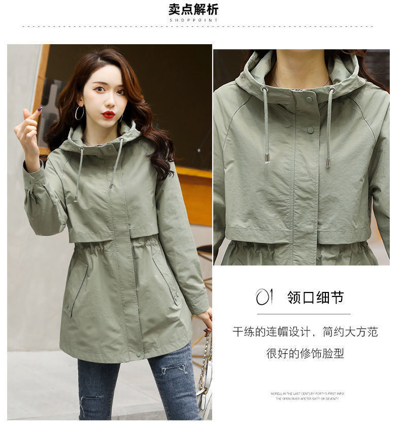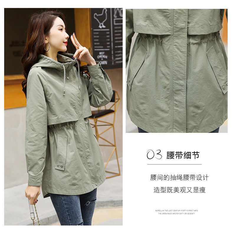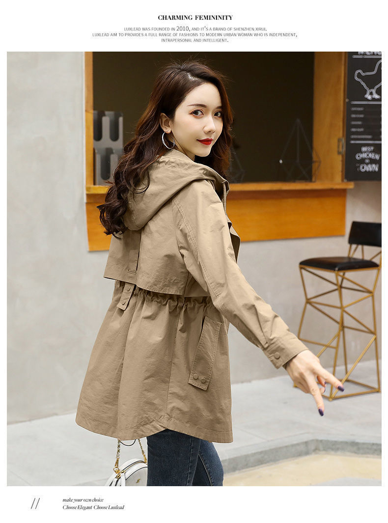 캐주얼 작은 솔리드 컬러 코트 여성의 중간 길이 2024 봄 가을 겨울 새로운 느슨한 허리 후드 작업 코트스토어 가기