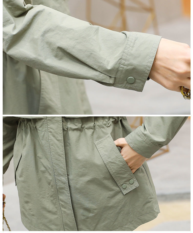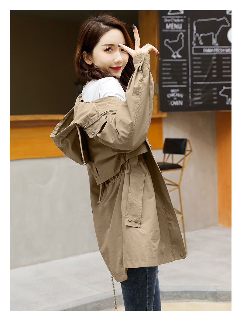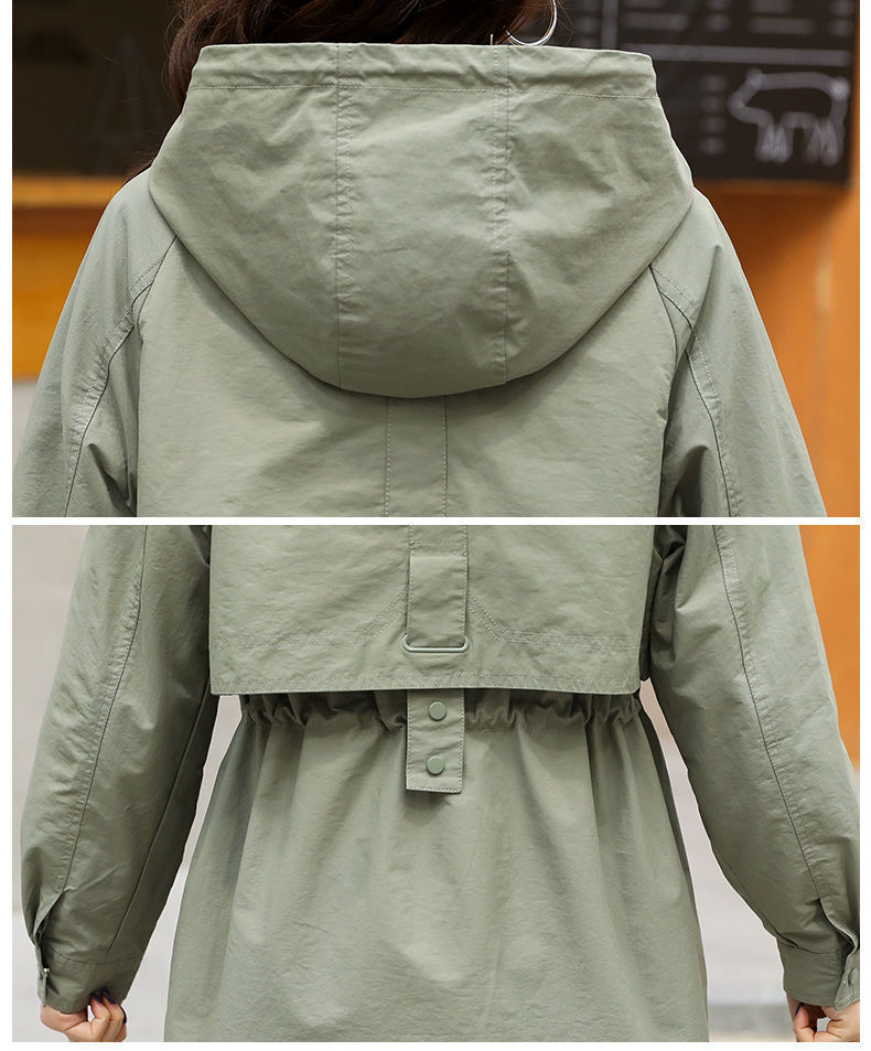 캐주얼 작은 솔리드 컬러 코트 여성의 중간 길이 2024 봄 가을 겨울 새로운 느슨한 허리 후드 작업 코트