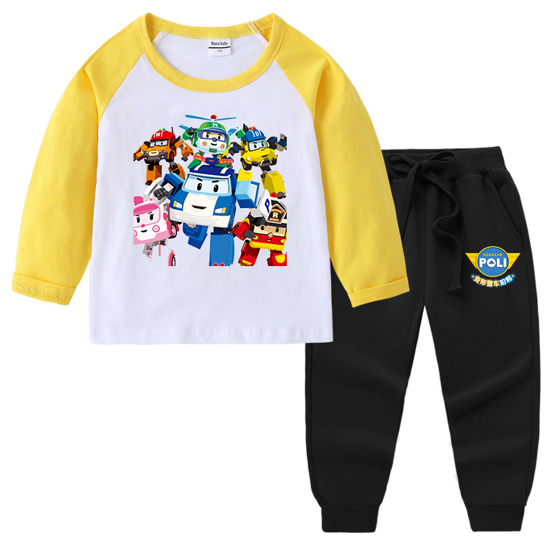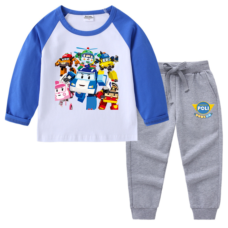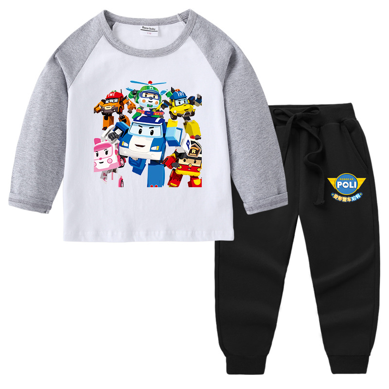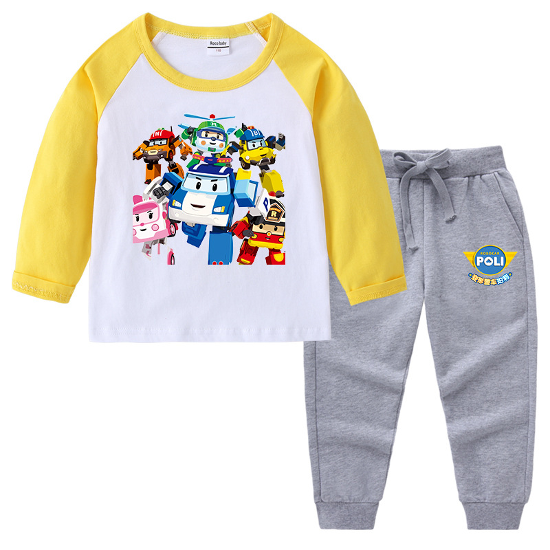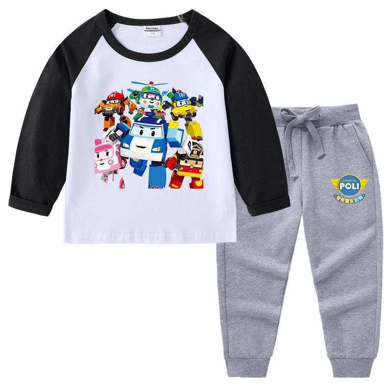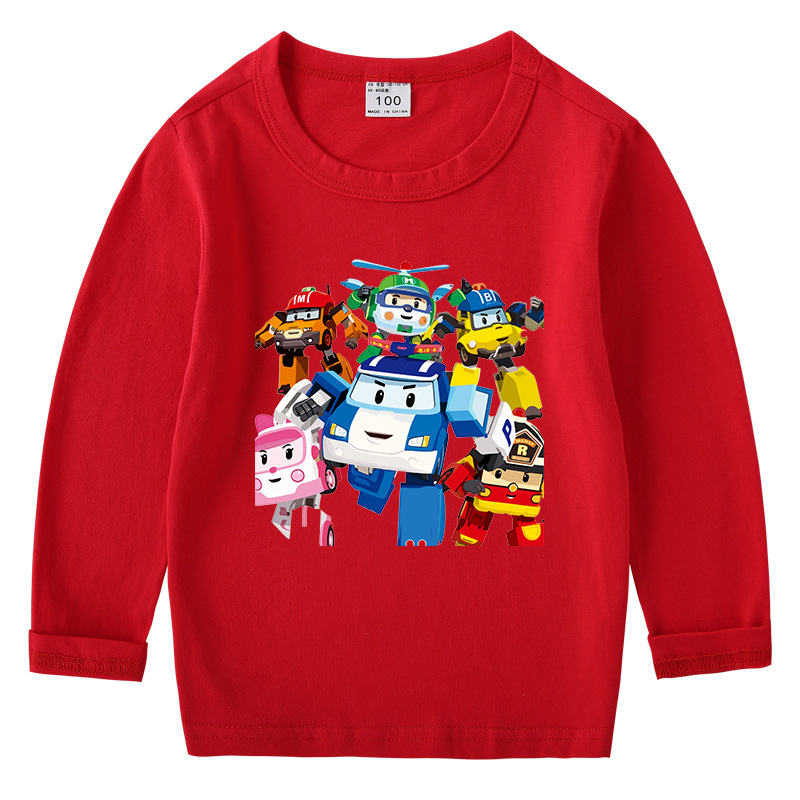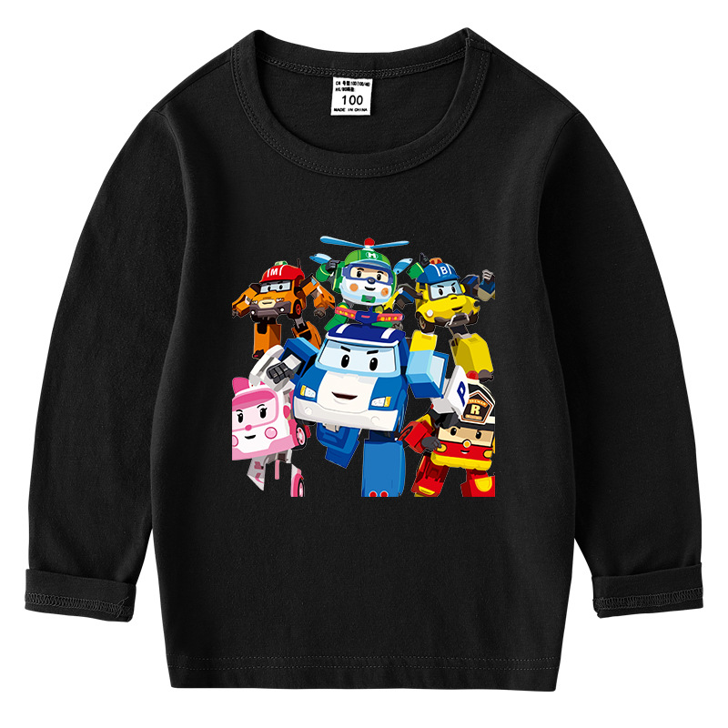 한국의 새로운 봄과 가을 어린이 티셔츠 크루 넥 만화 긴 소매 탑베이스 셔츠 소년과 딸 어린이 세트 코튼 티셔츠