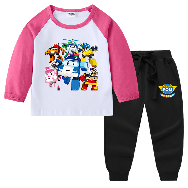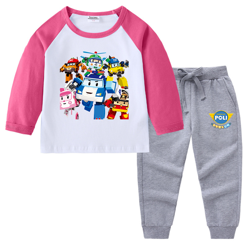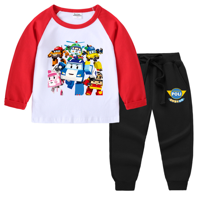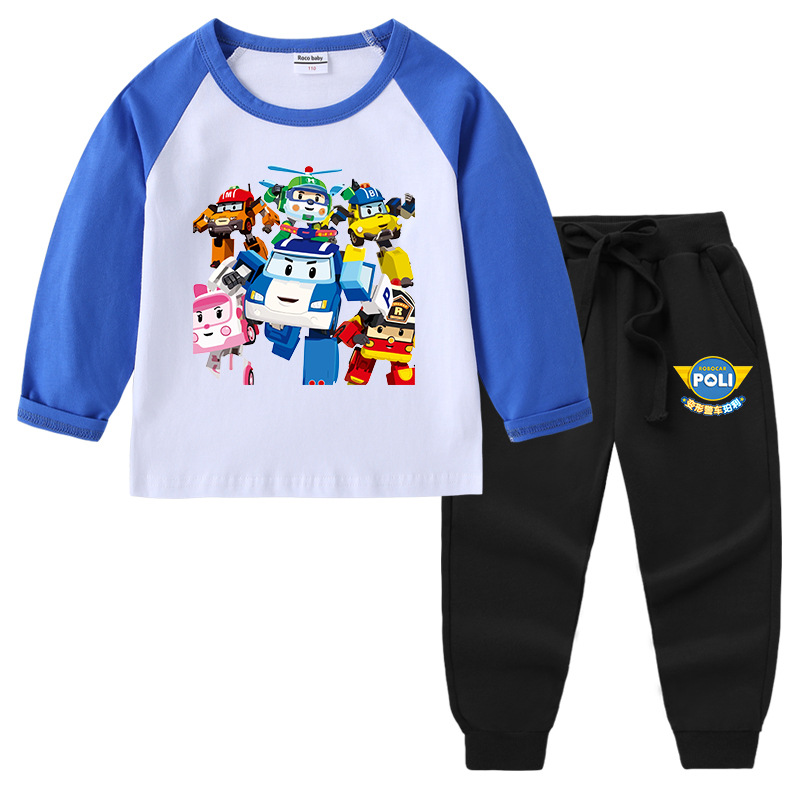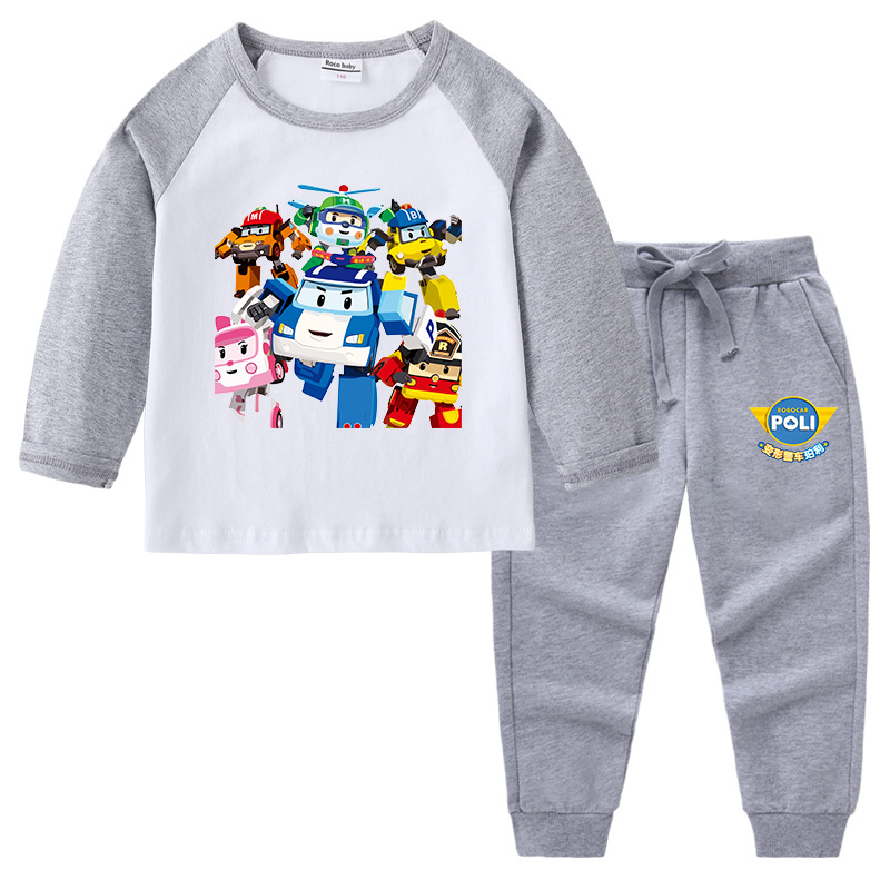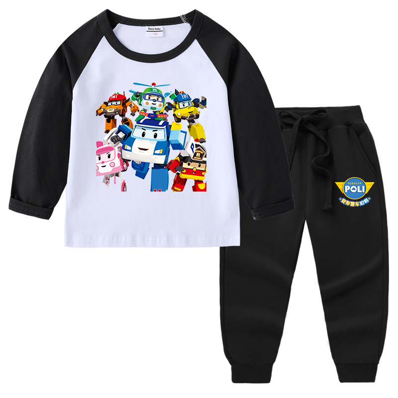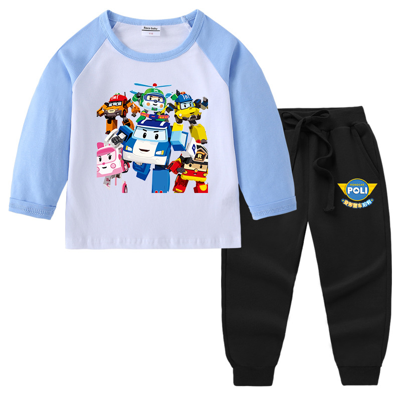 한국의 새로운 봄과 가을 어린이 티셔츠 크루 넥 만화 긴 소매 탑베이스 셔츠 소년과 딸 어린이 세트 코튼 티셔츠