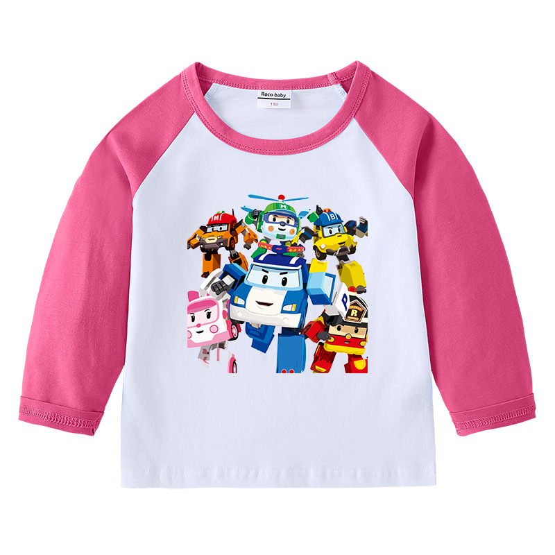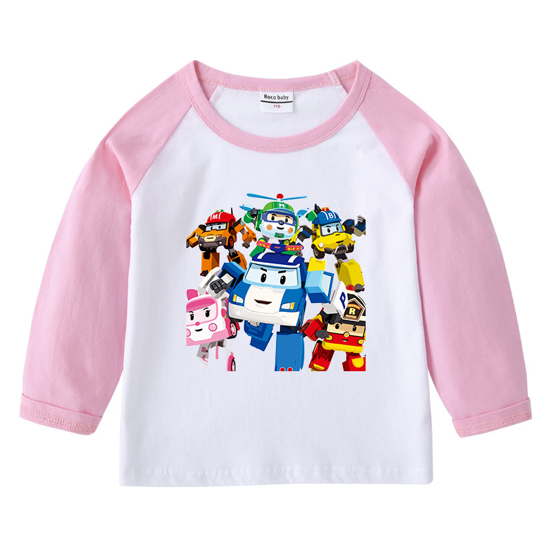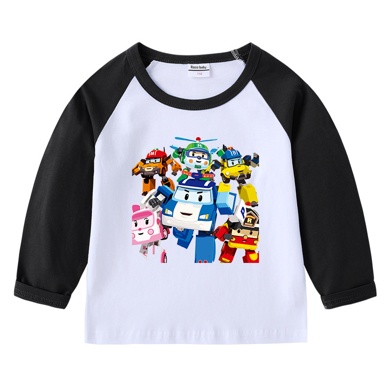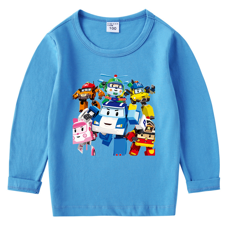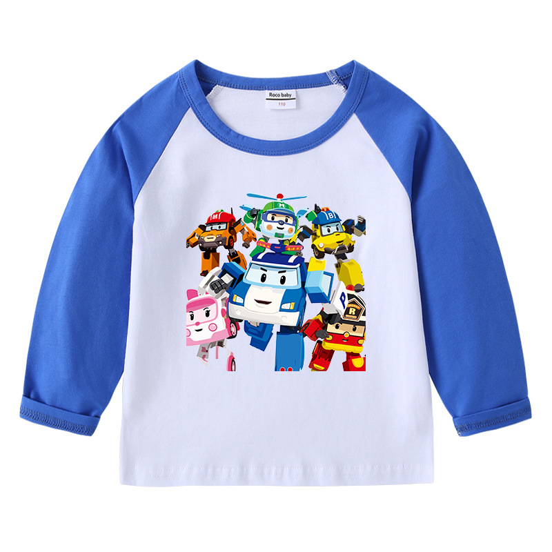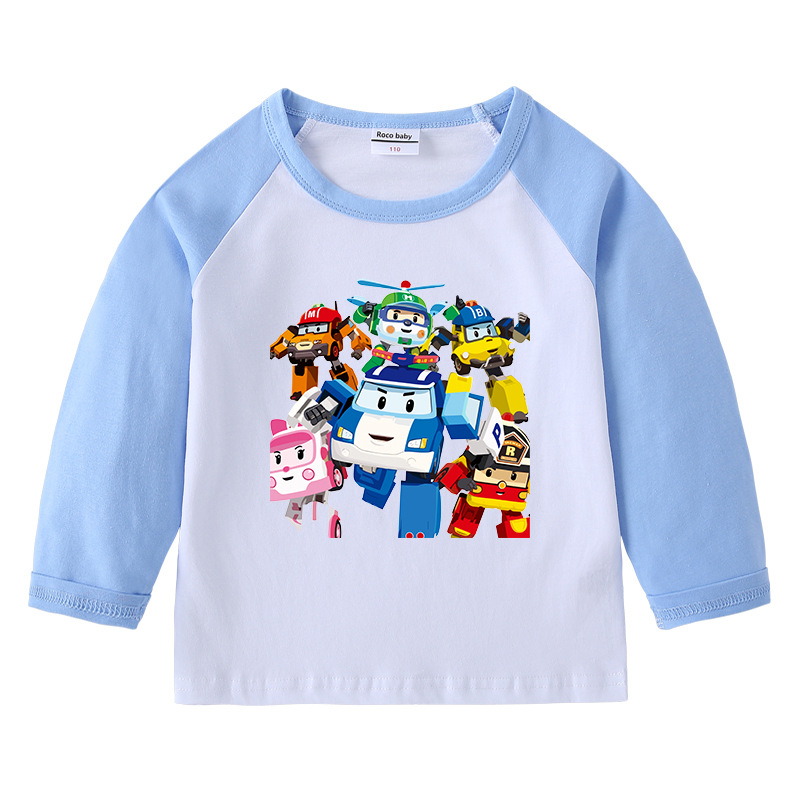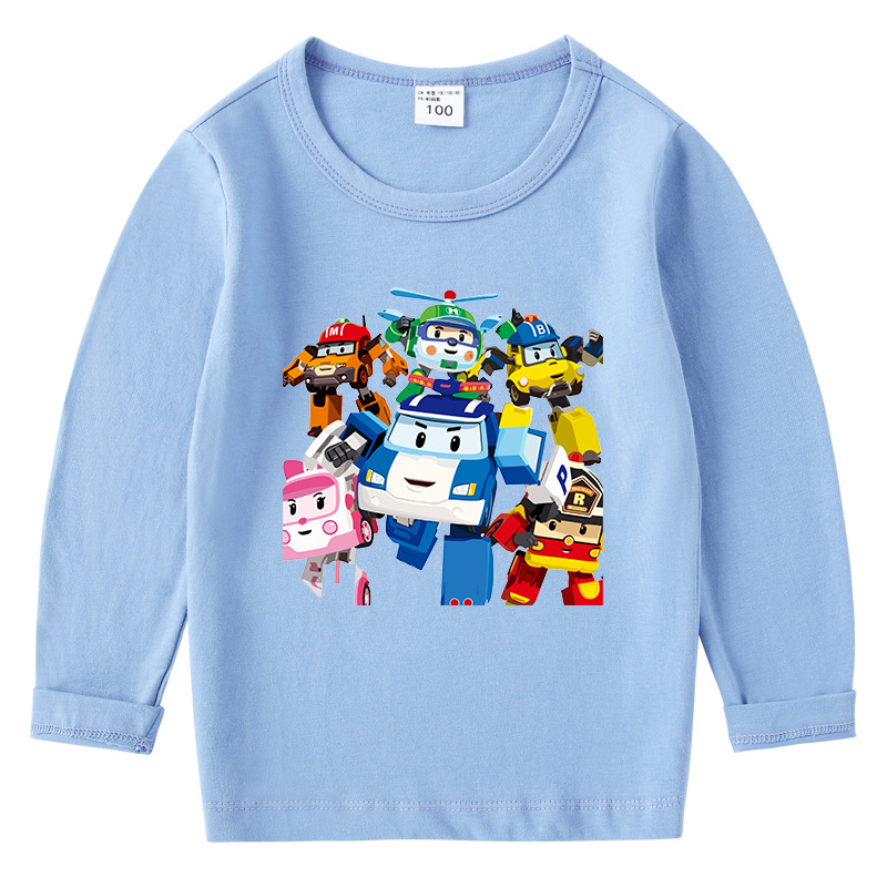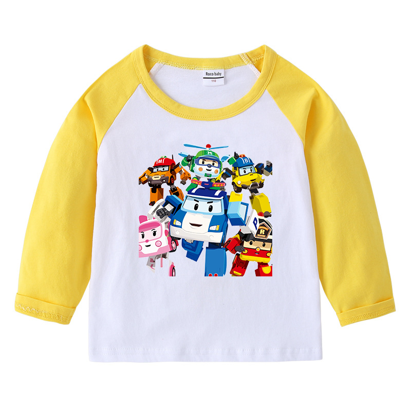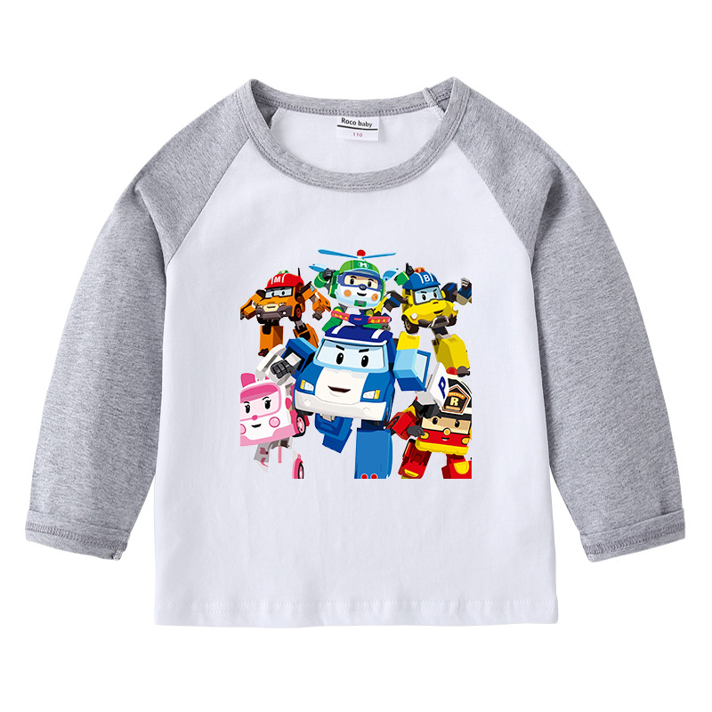한국의 새로운 봄과 가을 어린이 티셔츠 크루 넥 만화 긴 소매 탑베이스 셔츠 소년과 딸 어린이 세트 코튼 티셔츠스토어 가기