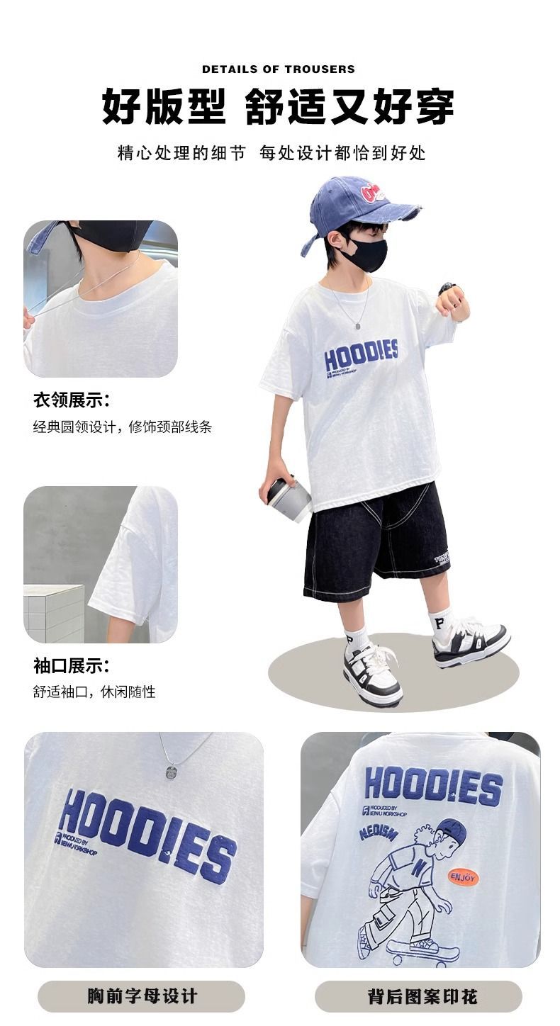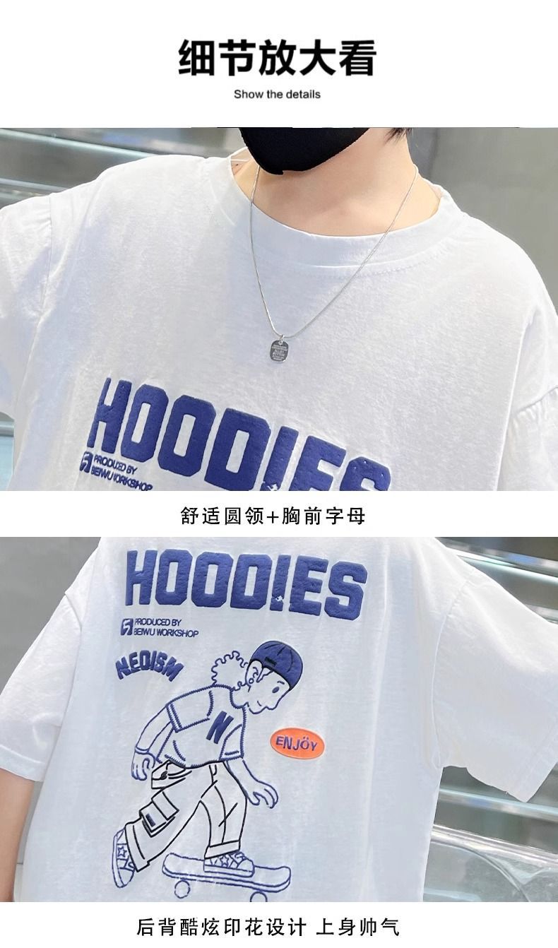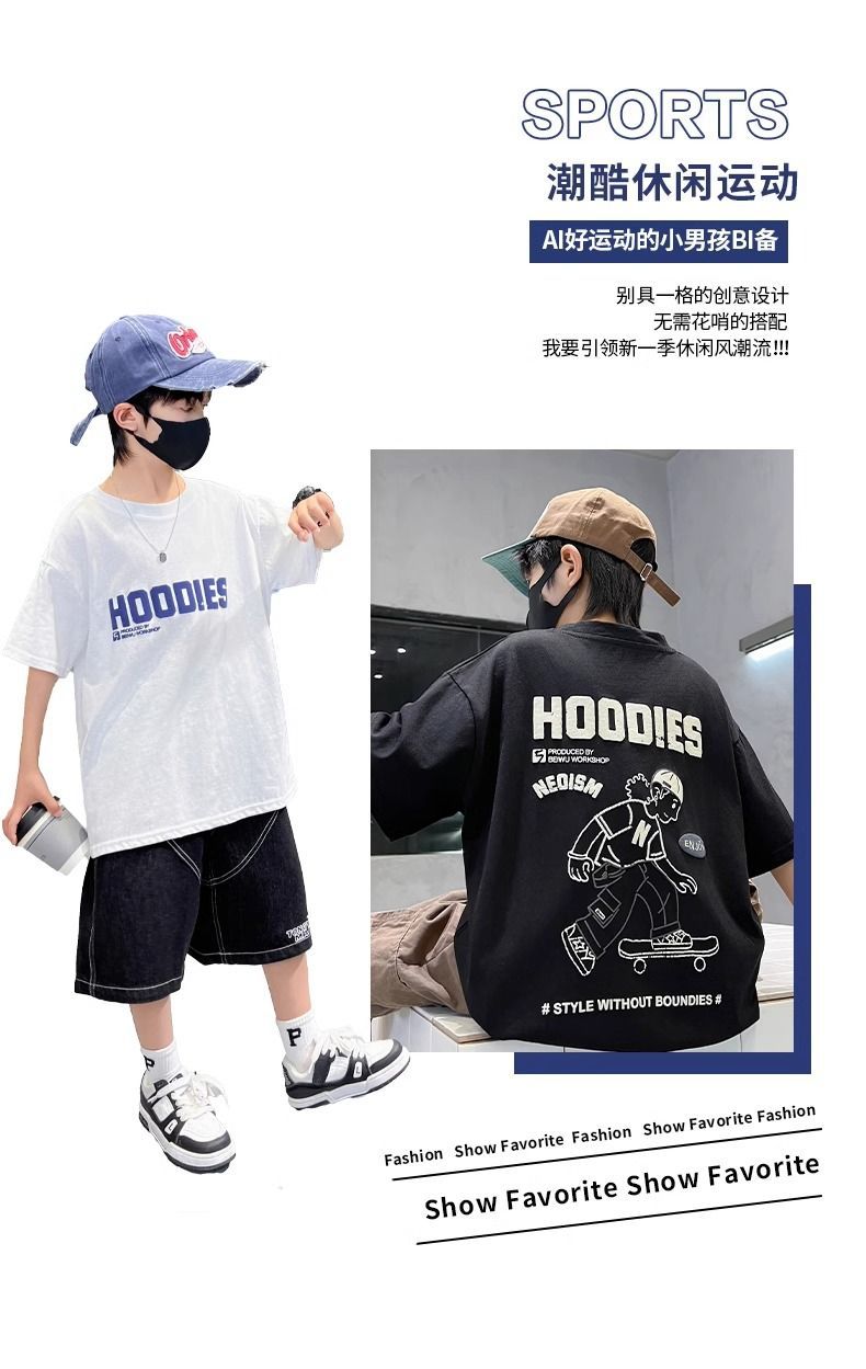 2026년 인기 상품 남아용 순면 반팔 패션 티셔츠 여름옷 아동 여름 상의 남아용 스타일리쉬 반팔 티셔츠스토어 가기