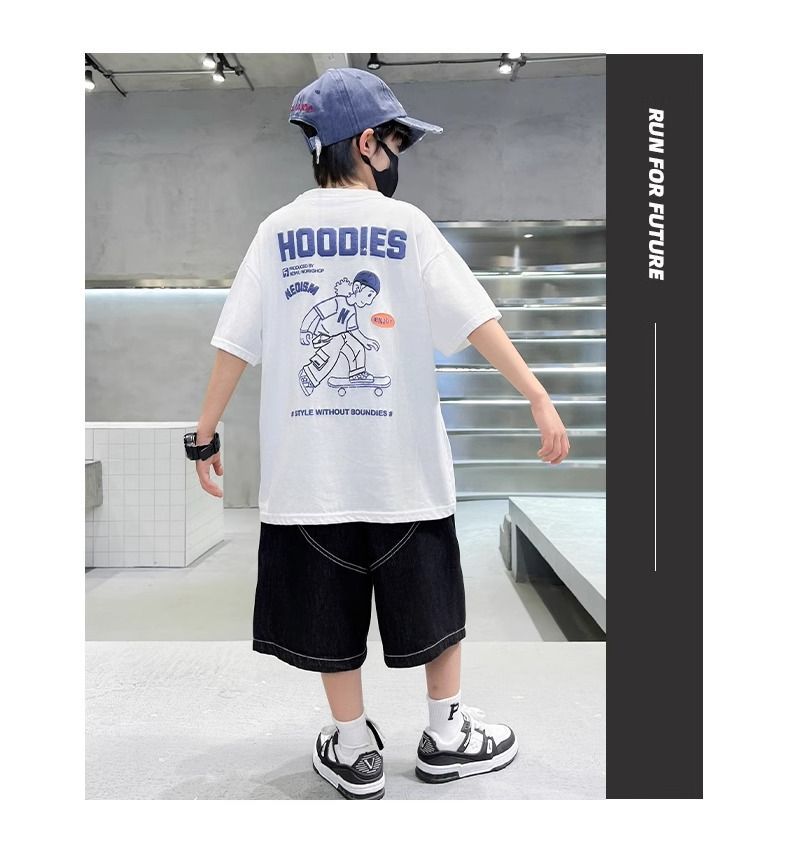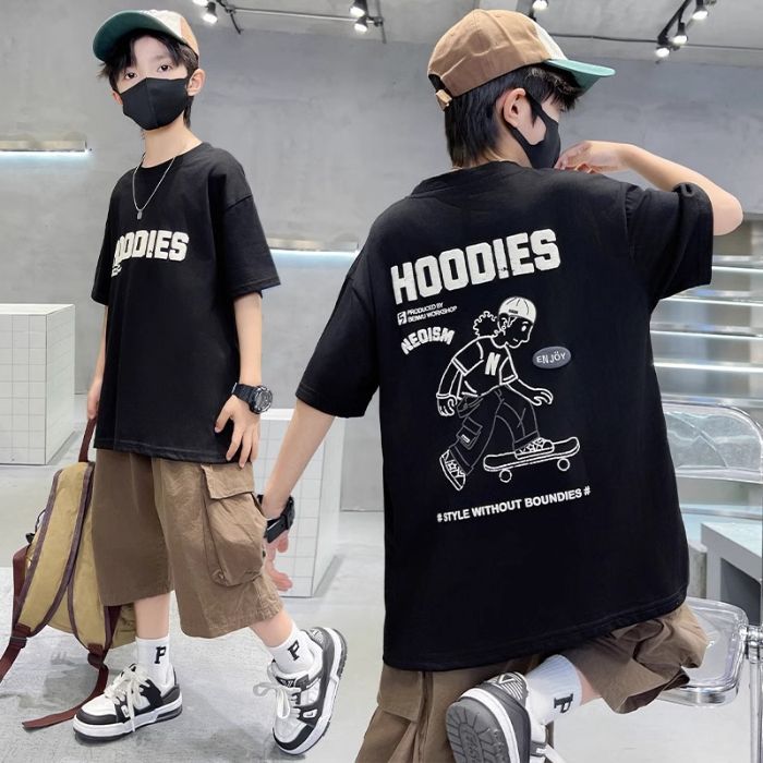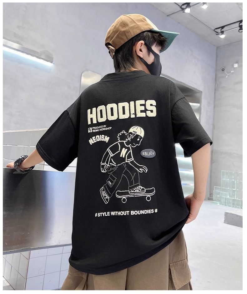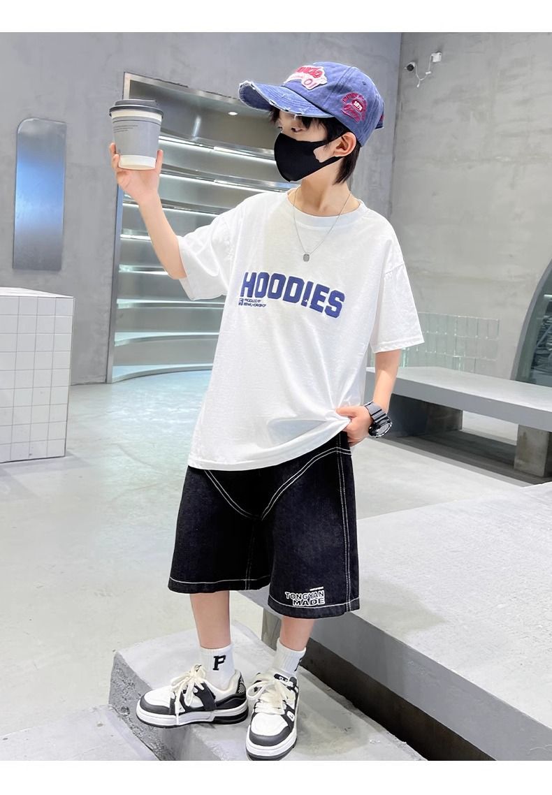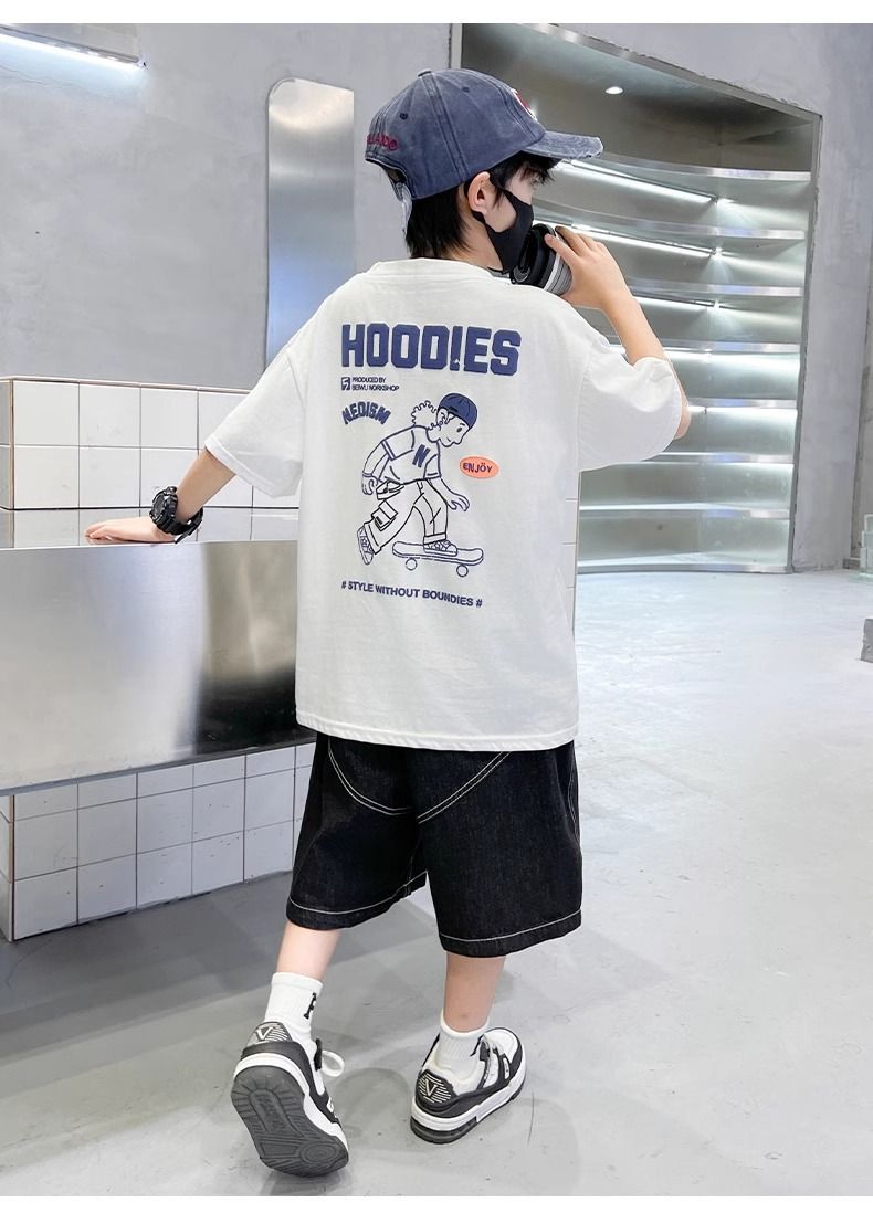 2026년 인기 상품 남아용 순면 반팔 패션 티셔츠 여름옷 아동 여름 상의 남아용 스타일리쉬 반팔 티셔츠스토어 가기