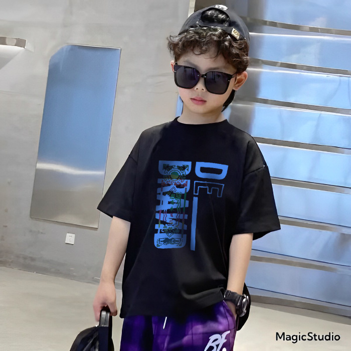 2026년 인기 상품 남아용 순면 반팔 패션 티셔츠 여름옷 아동 여름 상의 남아용 스타일리쉬 반팔 티셔츠