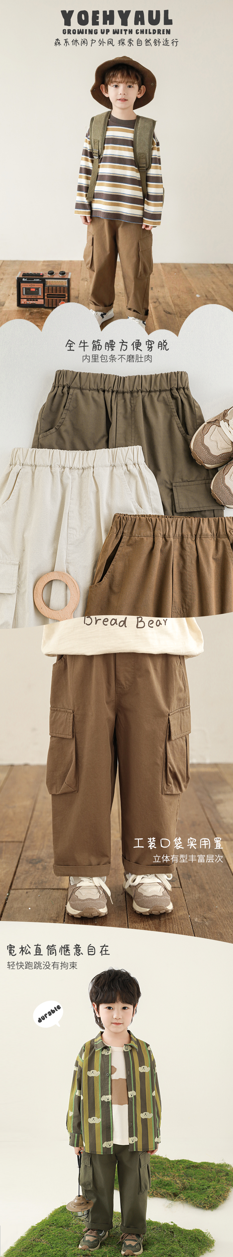 Wurib Boys Spring New Mori Loose Straight Overalls 캐주얼 패션 어린이를위한 올 매치 트렌디 바지스토어 가기