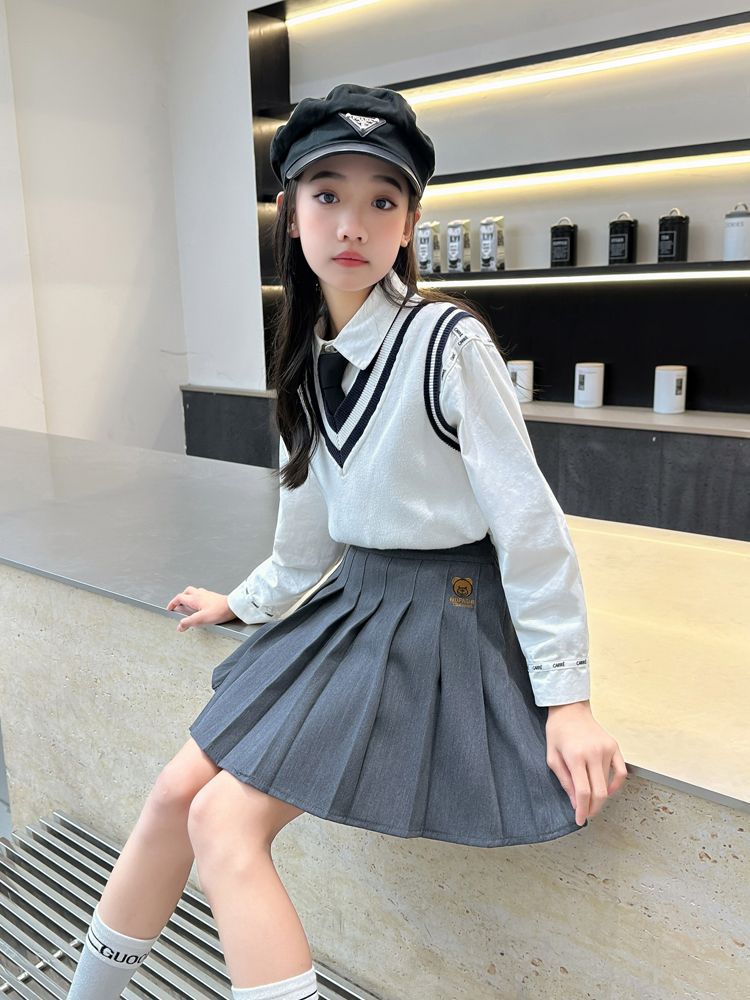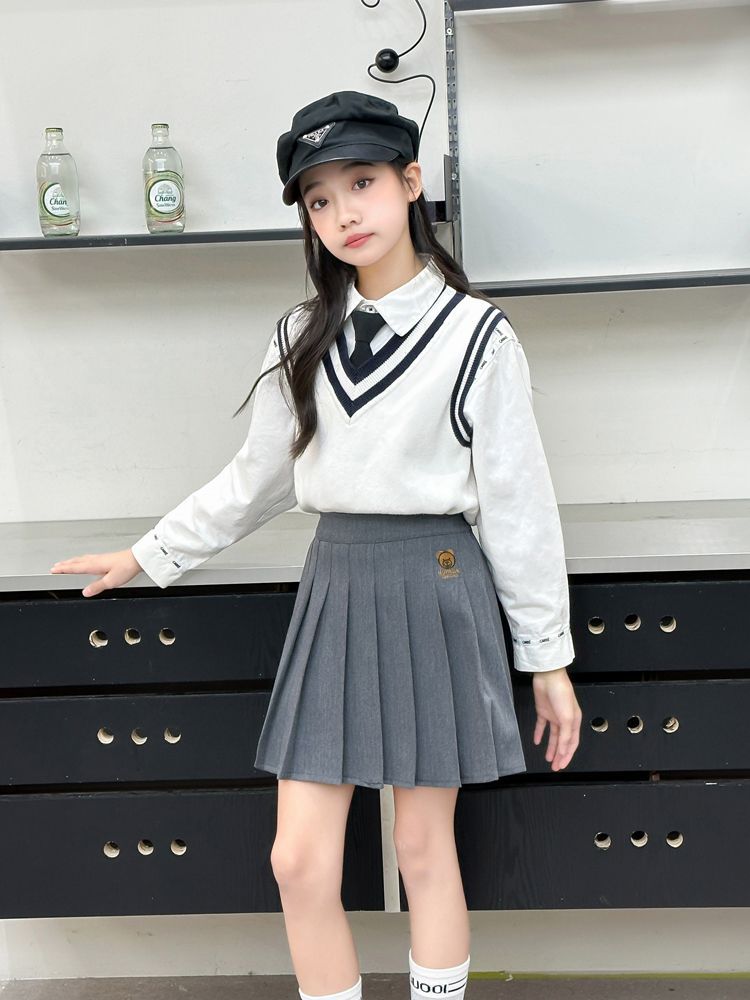 소녀의 안티 알몸 반 길이 스커트 중 큰 아이 유행 팬 춘추 스타일 소녀의 서양식 학술 스타일 플리츠 스커트 JK 스커트스토어 가기