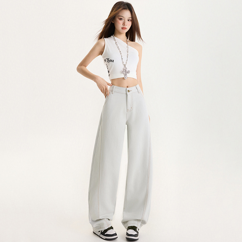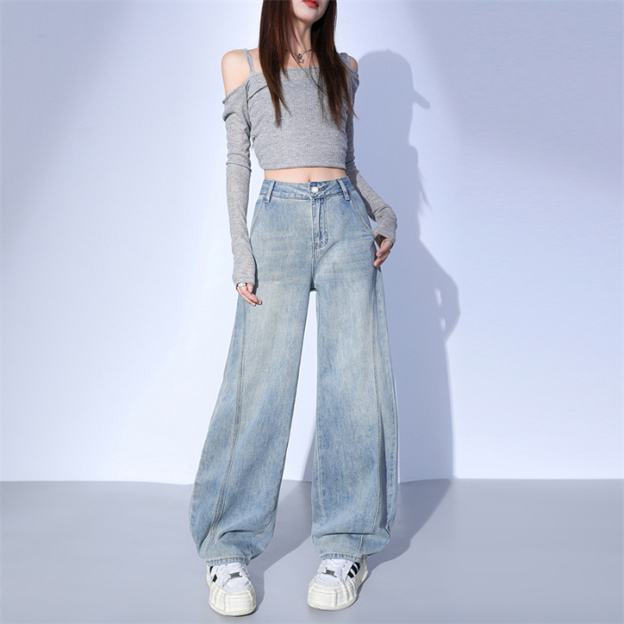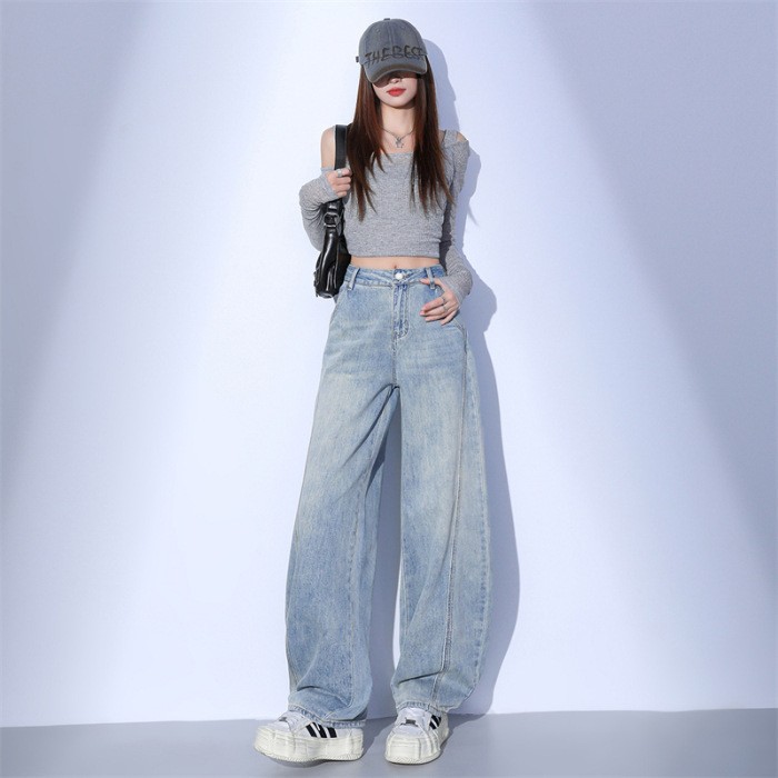 라이트 블루 빈티지 캐주얼 Machete 청바지 여성의 2025 봄 새로운 분할 느슨한 넓은 다리 바나나 할머니 바지스토어 가기